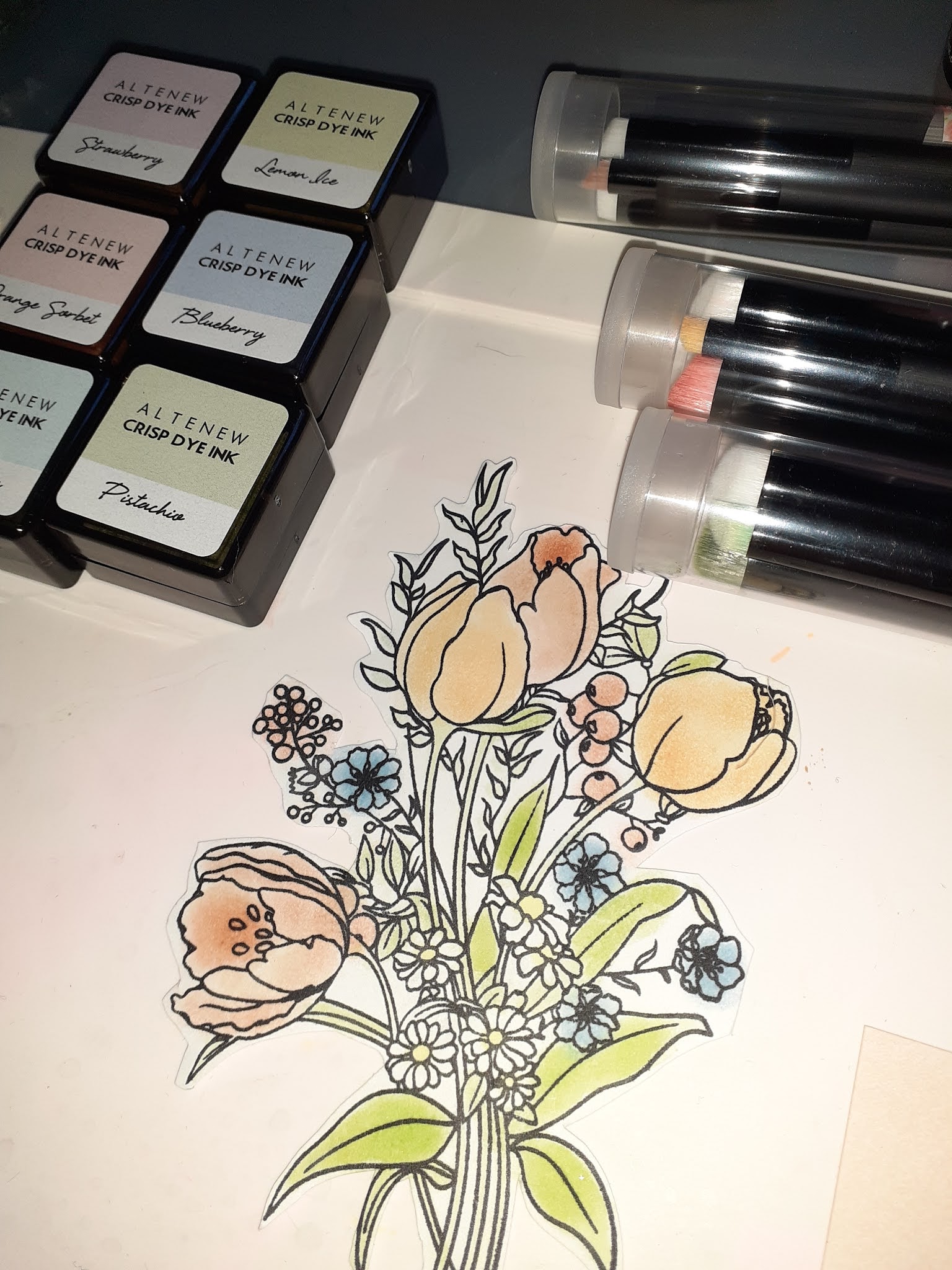 I purchased the Altenew detailed brush to use with my stencils for tiny blends of colour.