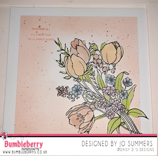 Add background to card blank, and add foam tape to the flower image, then add this at an angle to your card.