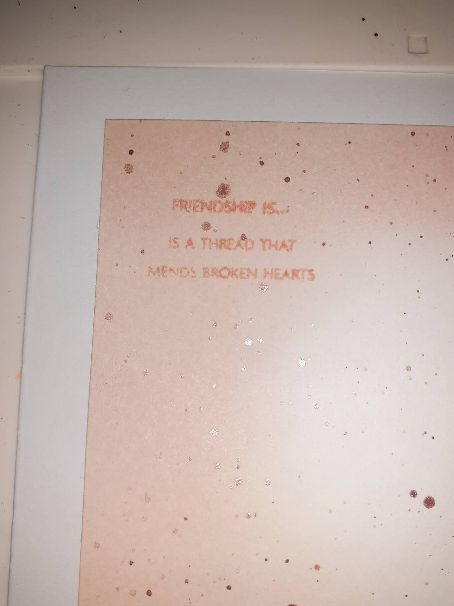Once Dry using your metallic paints flick on the two pink paint colours in the palette.