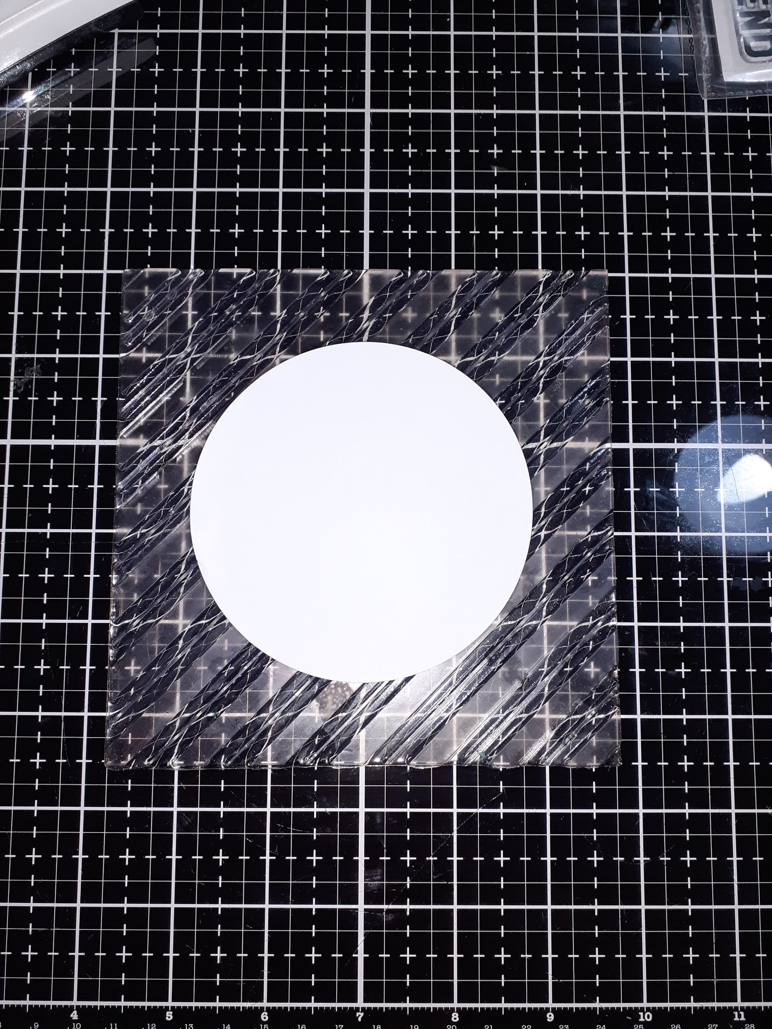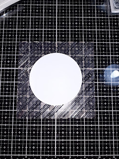 Lay down your stamp on to your craft mat, using the masking magic cut out a circle. I die cut mine.