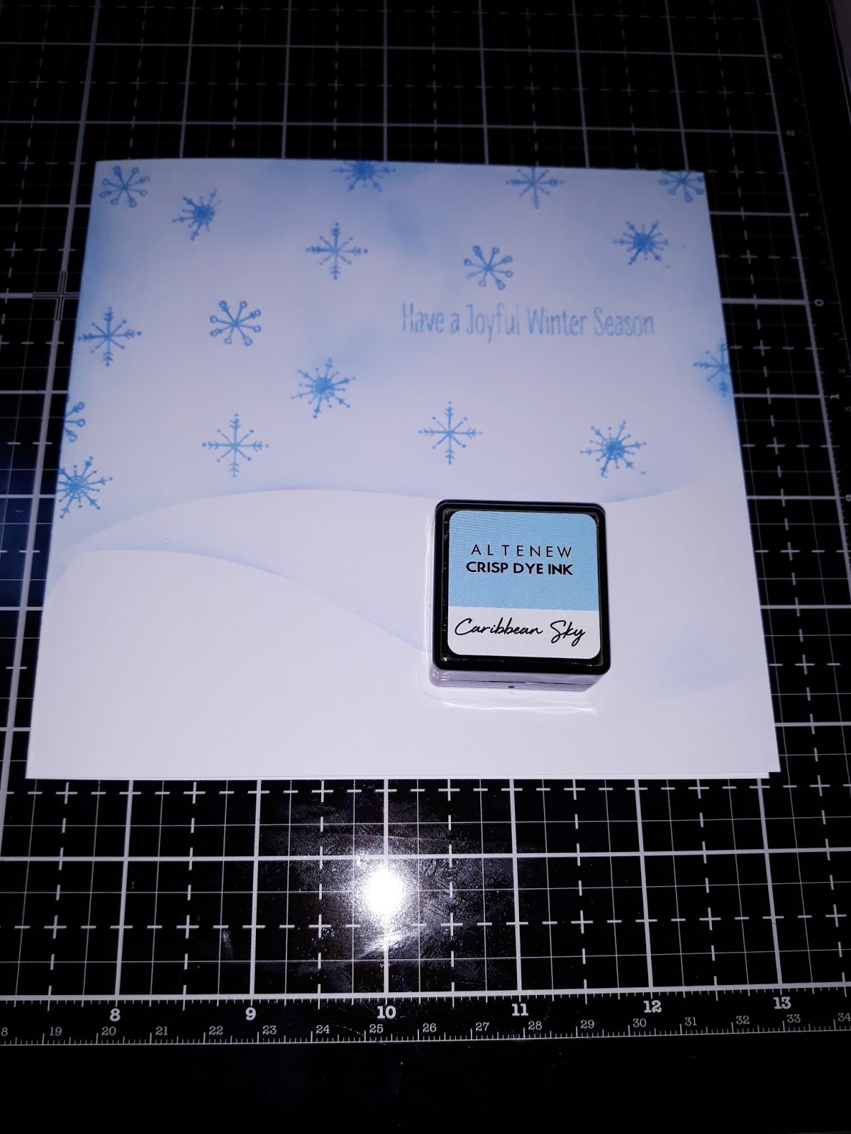 I then used the Altenew ink, to add the snow flake images and Sentiment.