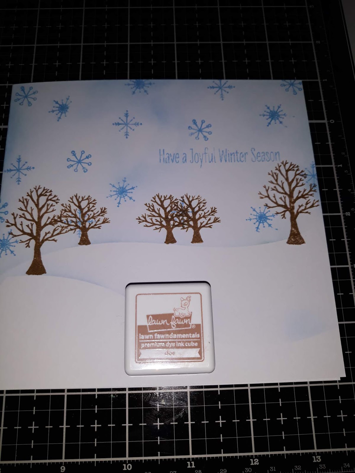 I then add the tree's with Lawn Fawn Doe ink cube.