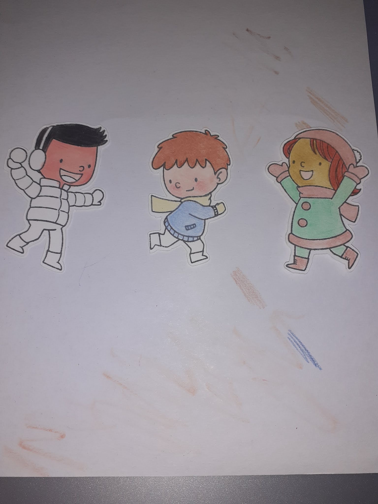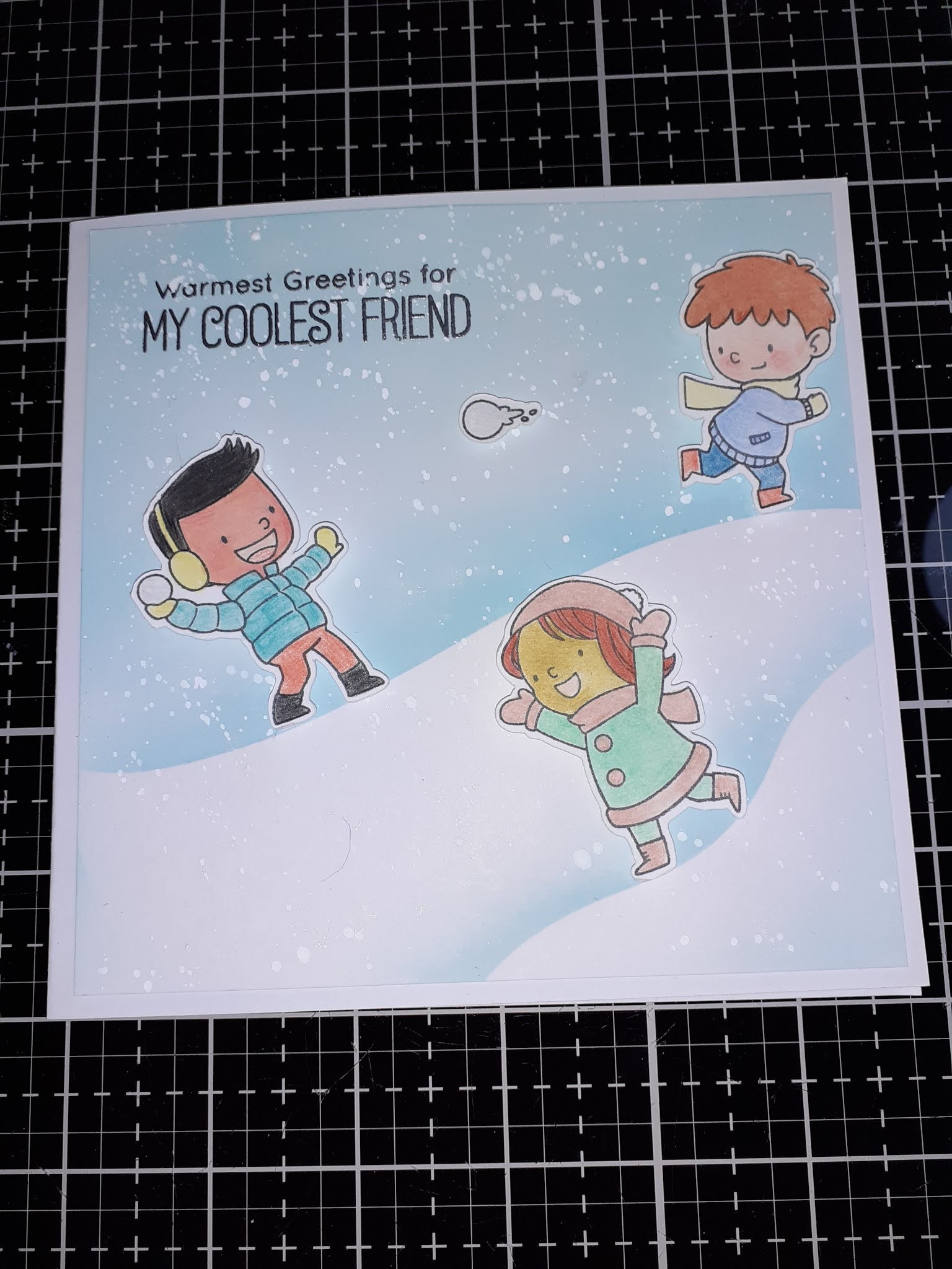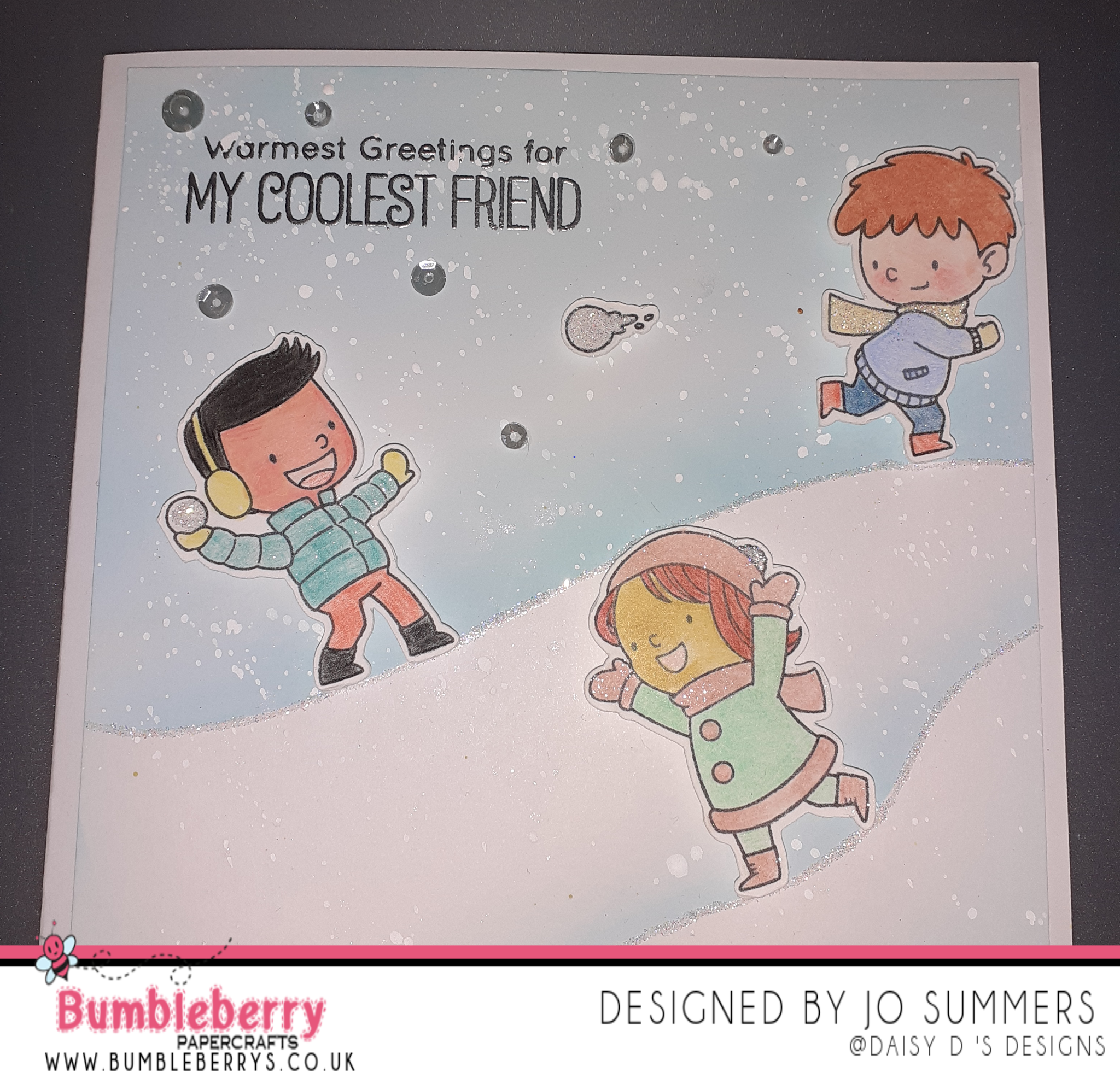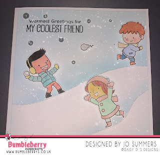 So today ive gone back to basic's by simply used my pencils to colour the children and stencil to create the snow drifs in the background.