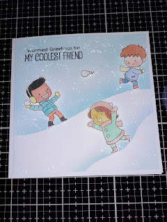 I thought I had sorted all my Christmas cards for this year, but I couldn't resist the latest release from Birdie Brown (My Favorite Things ) Pile on the hugs, this stamp set was just so cute with the images of children playing in the snow. I am as you know a huge Birdie Brown fan.