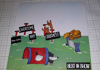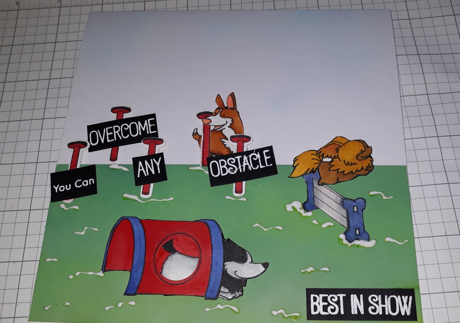 First I blended the Mowed Lawn distress ink, on a 7" x 2" strip of card to create the grass.