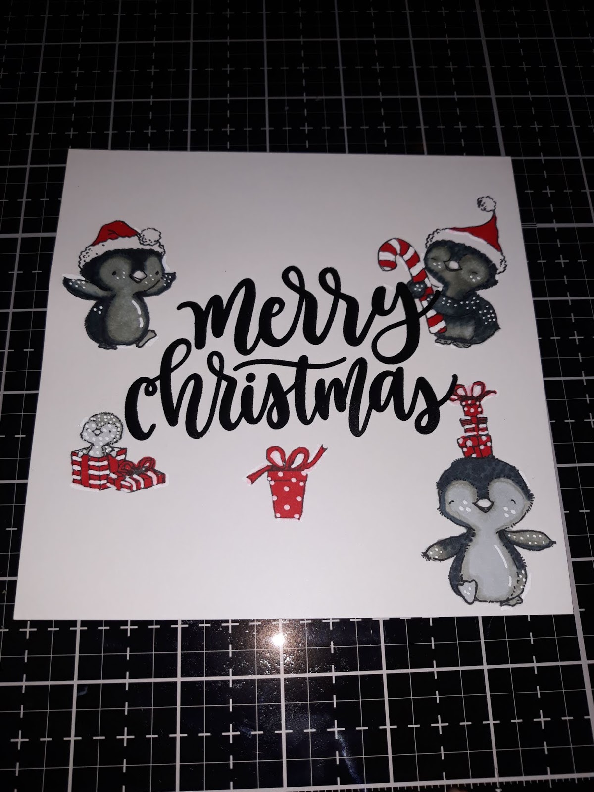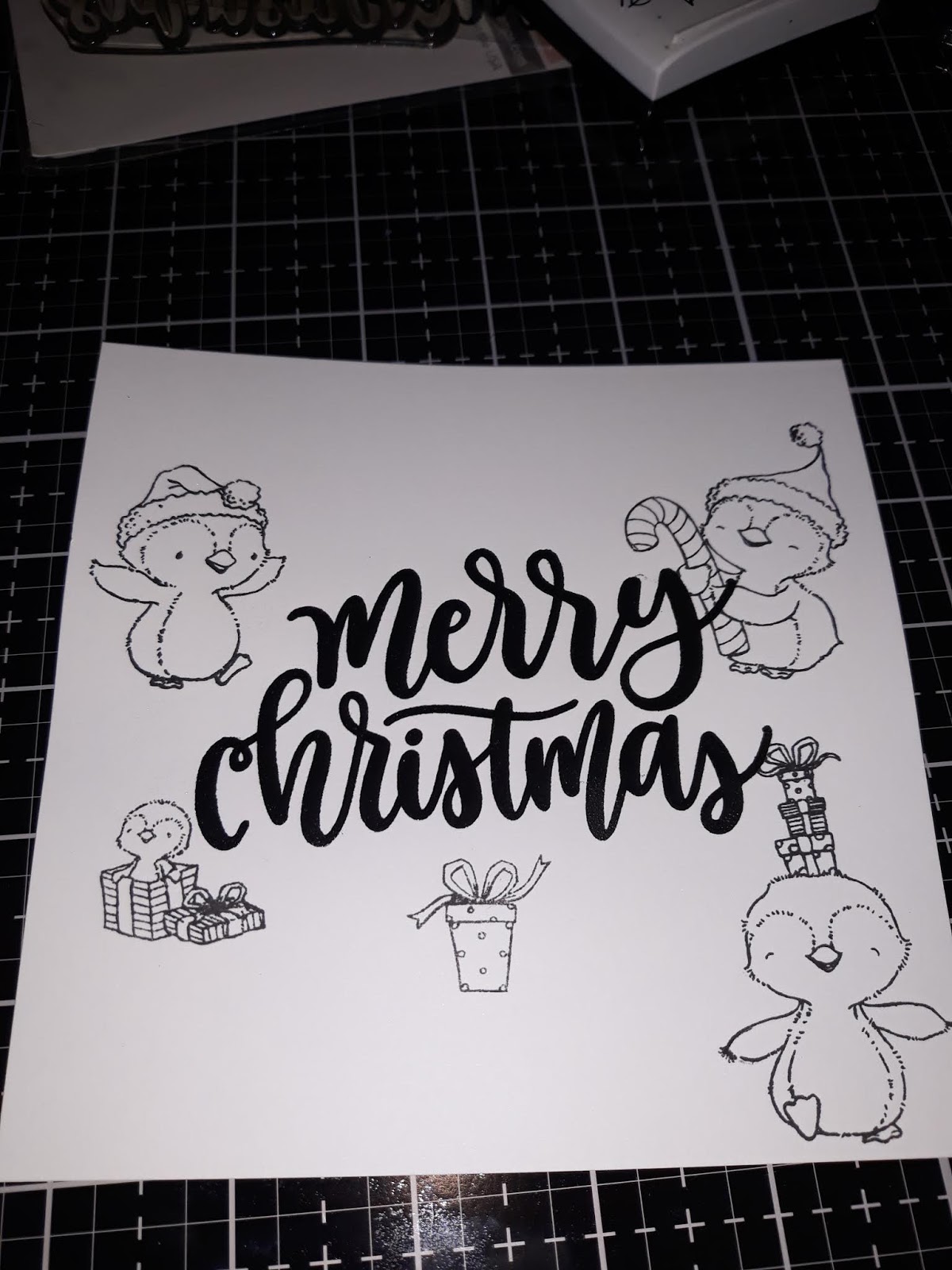 This was a must have stamp set for me,as the four adorable fluffy penguins accompanied by a little baby penguin, was just to perfect not to play with.