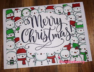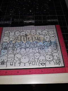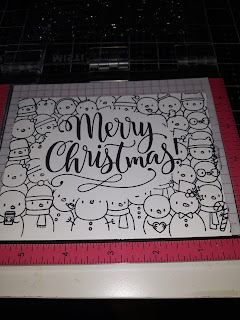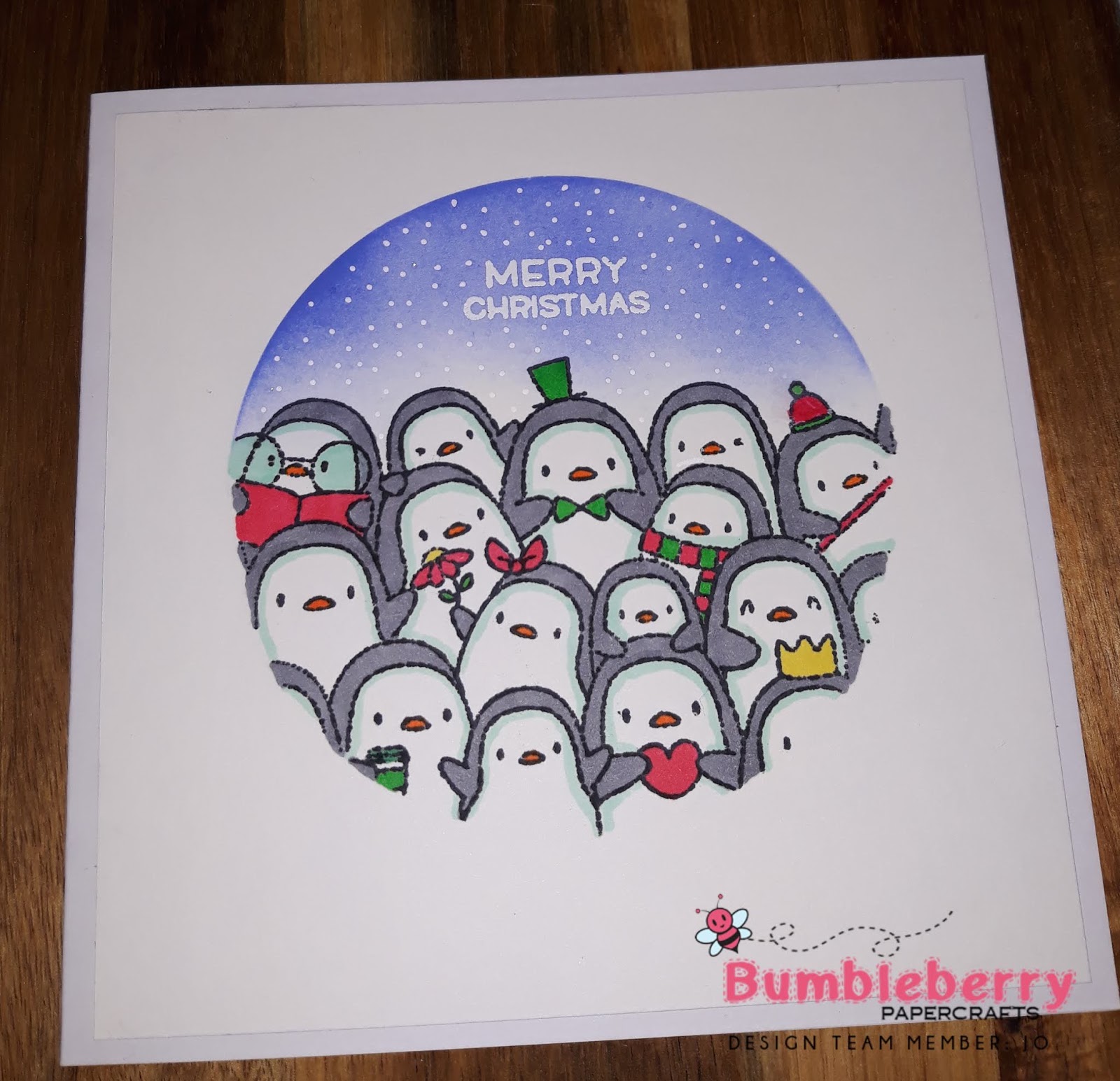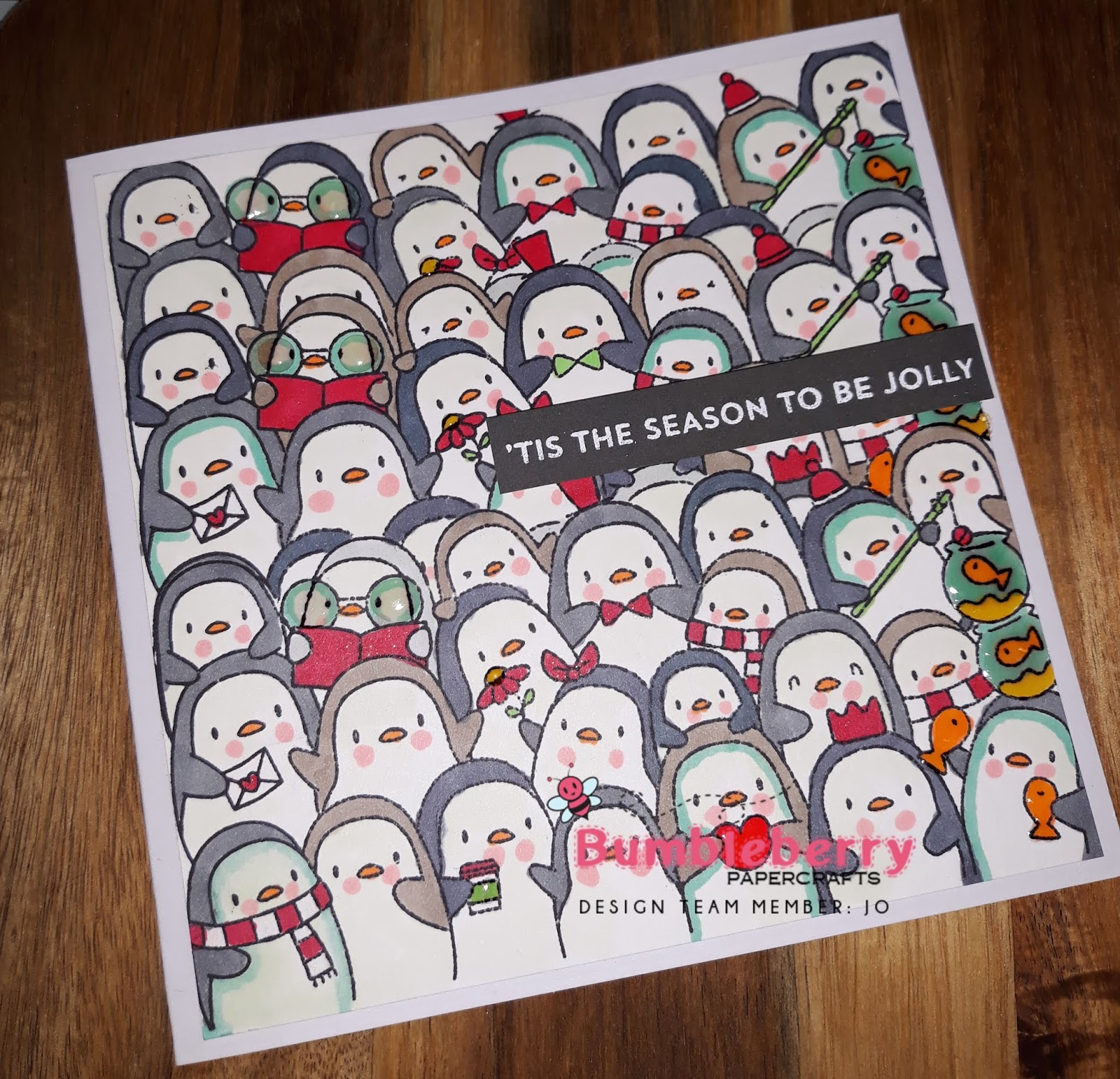 I then Stamped my first set of penguins masked them off then stamped the next, until they continued for the length of the card stock. I then Coloured them with alcohol markers. Add a sentiment and finally some crystal glaze.