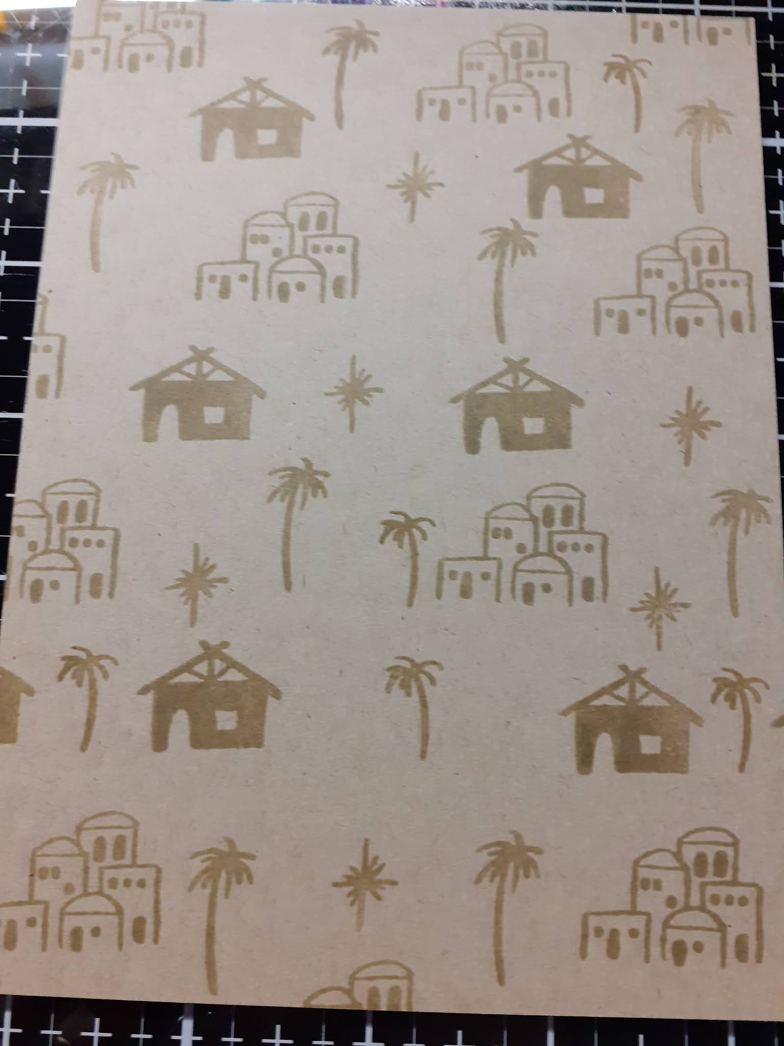 Firstly using your the little stamp images to stamp in Kraft ink on to Kraft cardstock. Your cardstock will be the same size as your card blank.