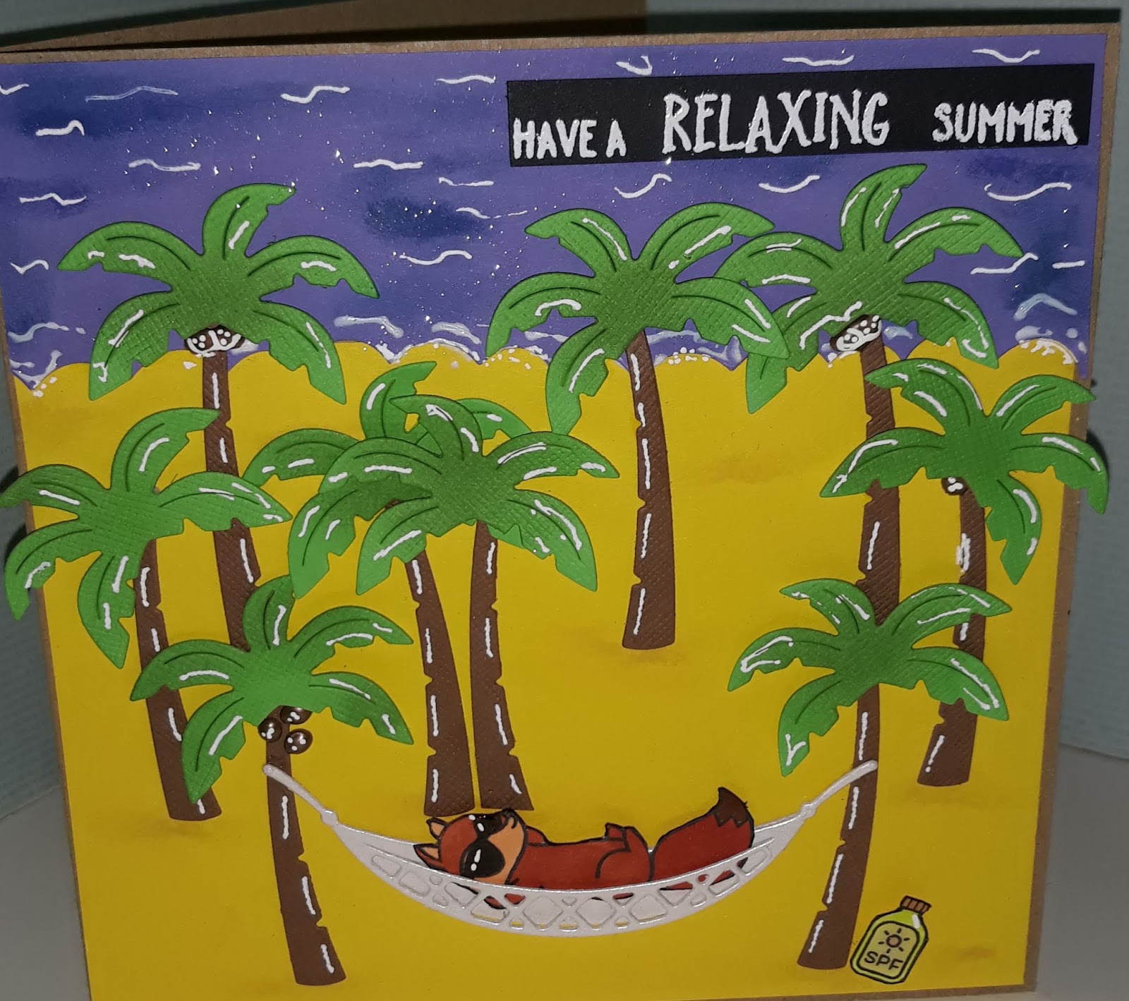 After Colouring your Critter, add him to the hammock. i coloured the sun cream and added at the bottom of the tree.