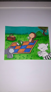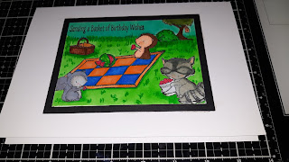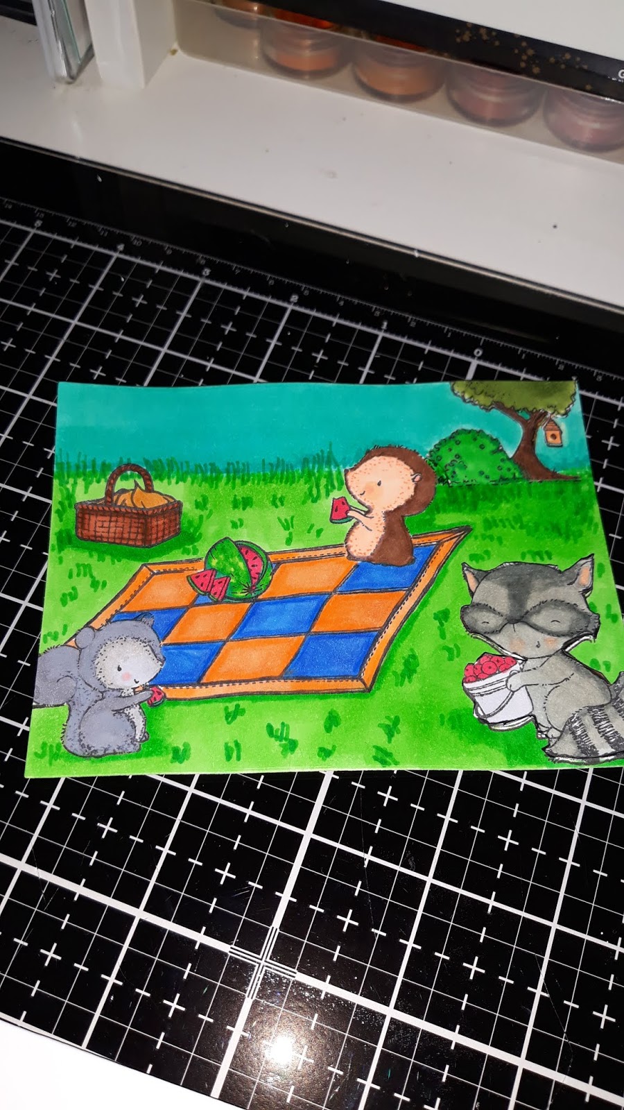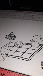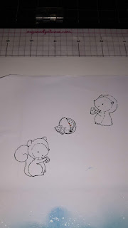 Then next step was to make sure the animals were on top of the blanket, this was achieve by stamping them first then, stamp on some masking paper and mask over the top before adding the Blanket.