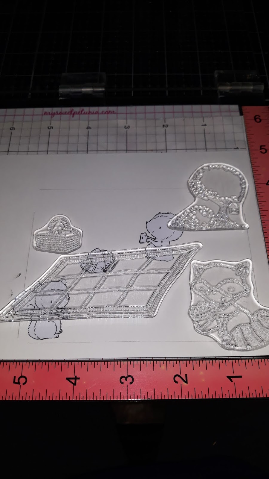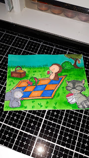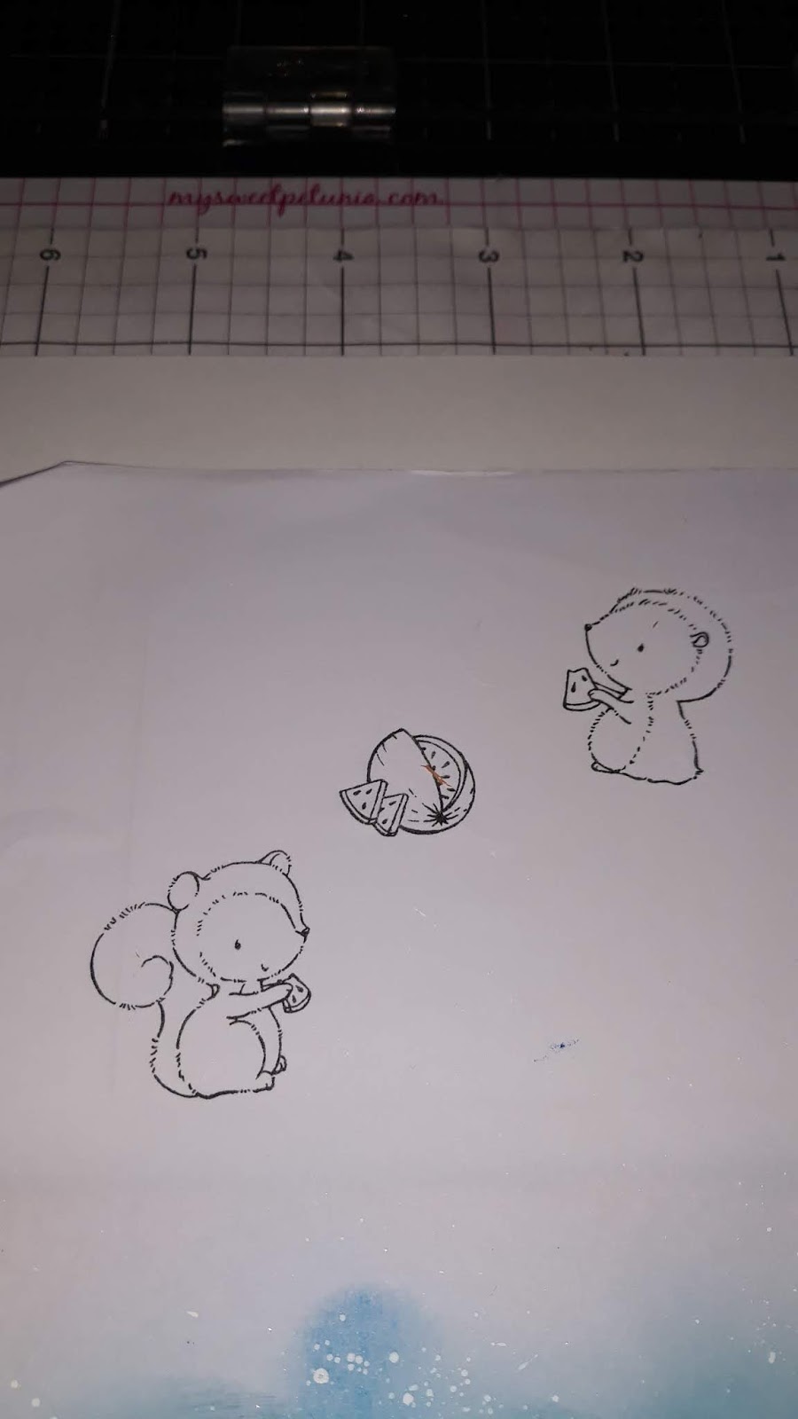 I Stamped the raccoon again and foam mounted him on top of the previous one. This brings him to the fore ground.