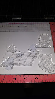 I then stamped them and removed the masks to reveal that they look like there sitting on the blanket.