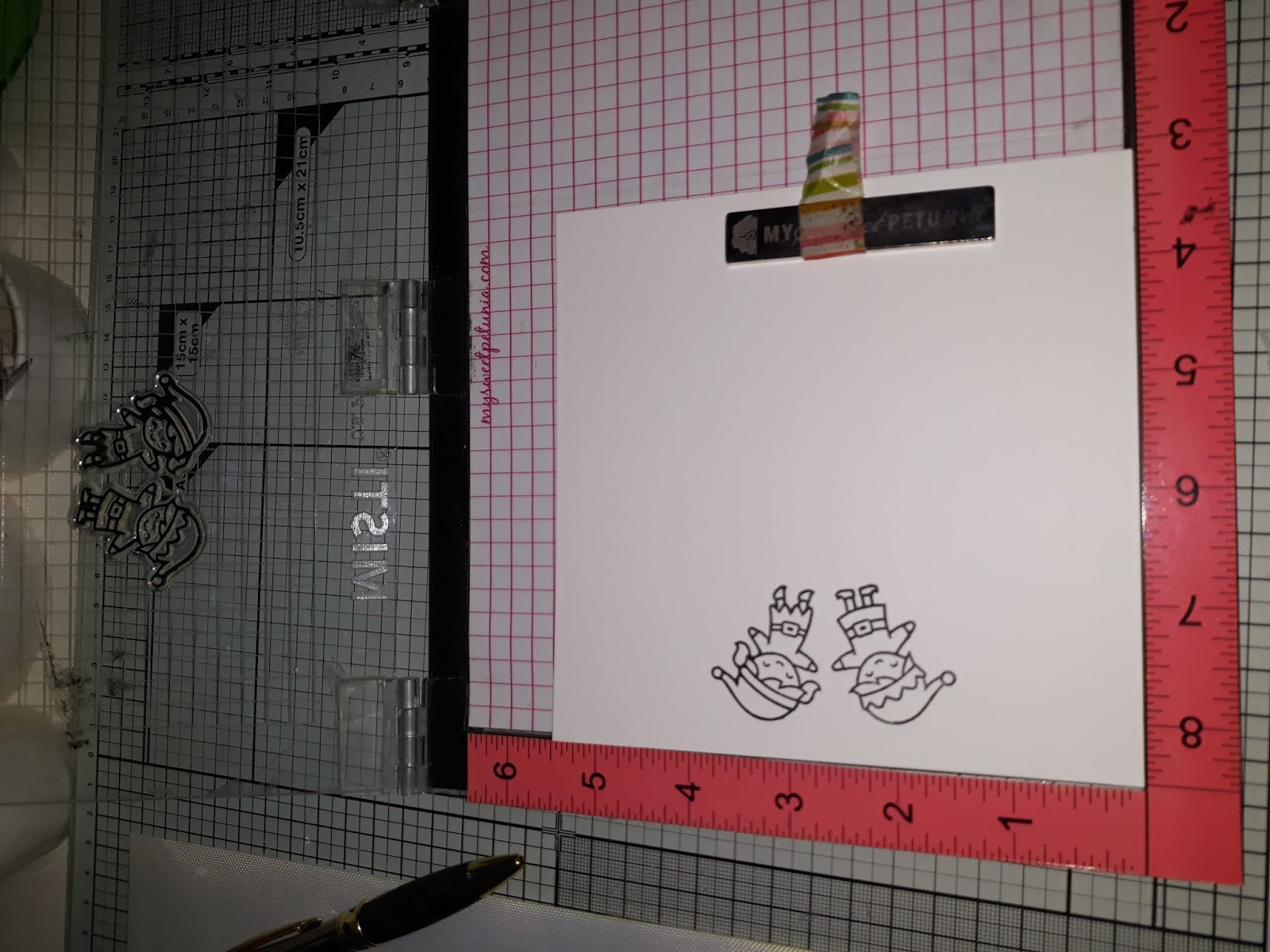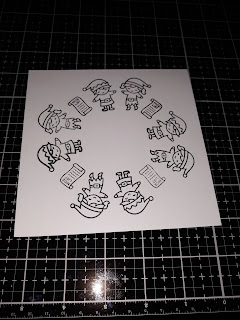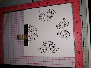 Then I placed my images at the middle top. I stamped them in memento ink, then turn the card stock half a turn.
