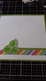 This formed the base for my pool. I cut a strip of rainbow paper and chevron, with some leaf images from the set.