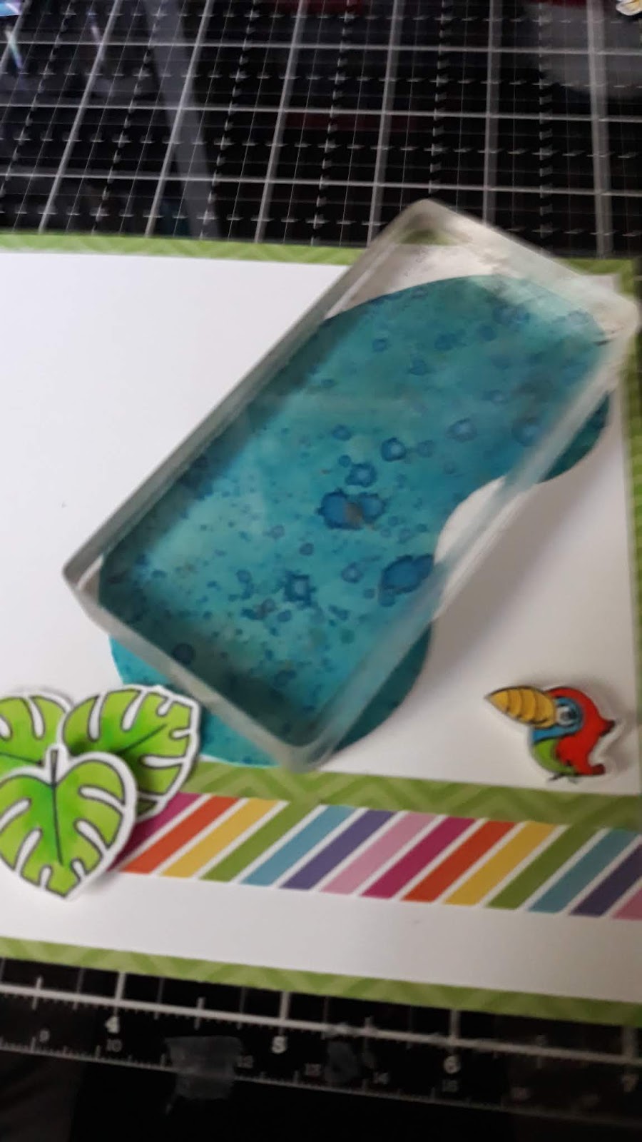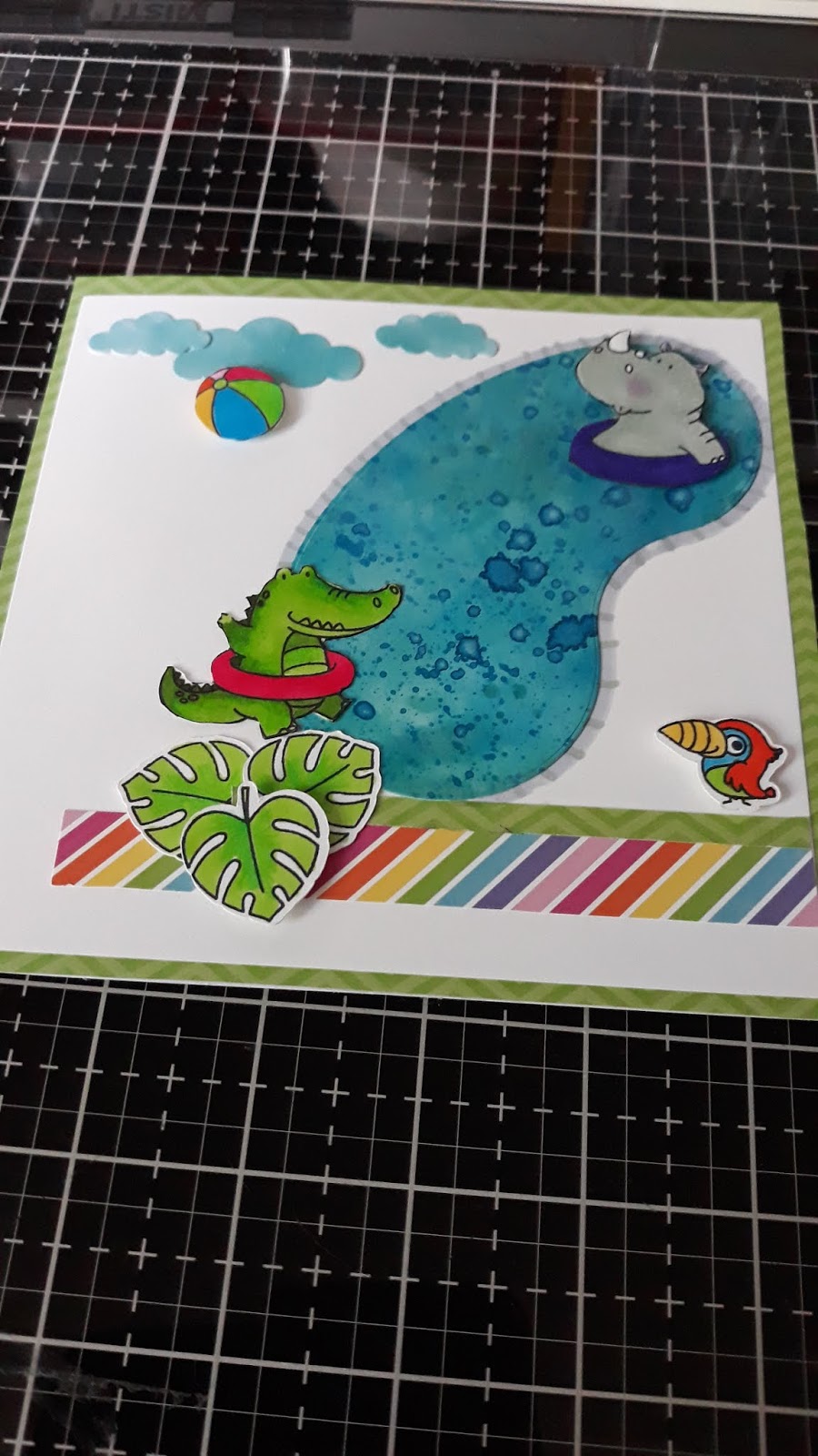 I drew round the pool with a grey Alcohol marker, to add the effect of tiles..