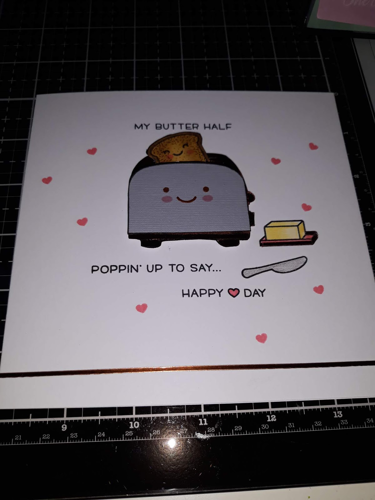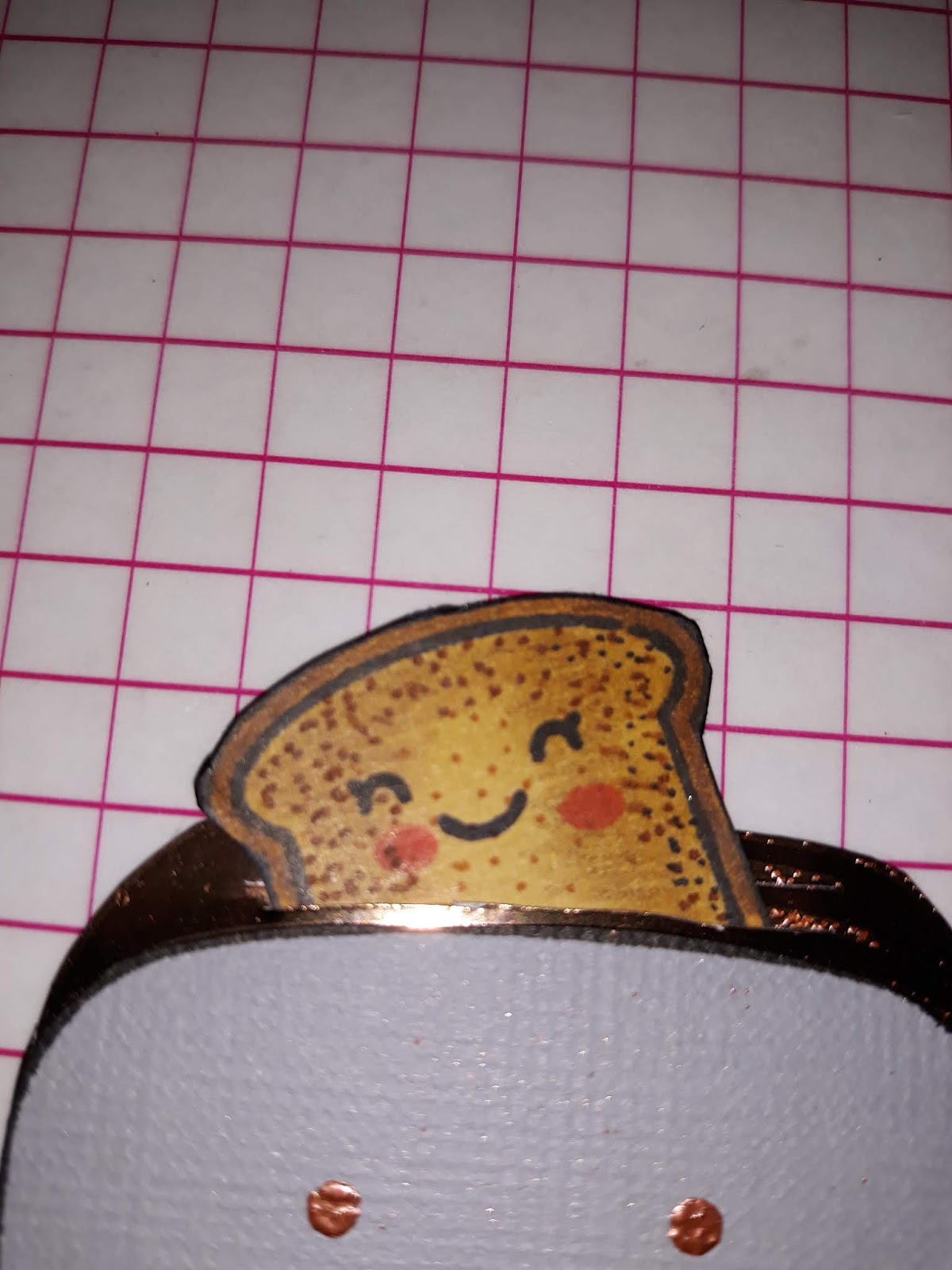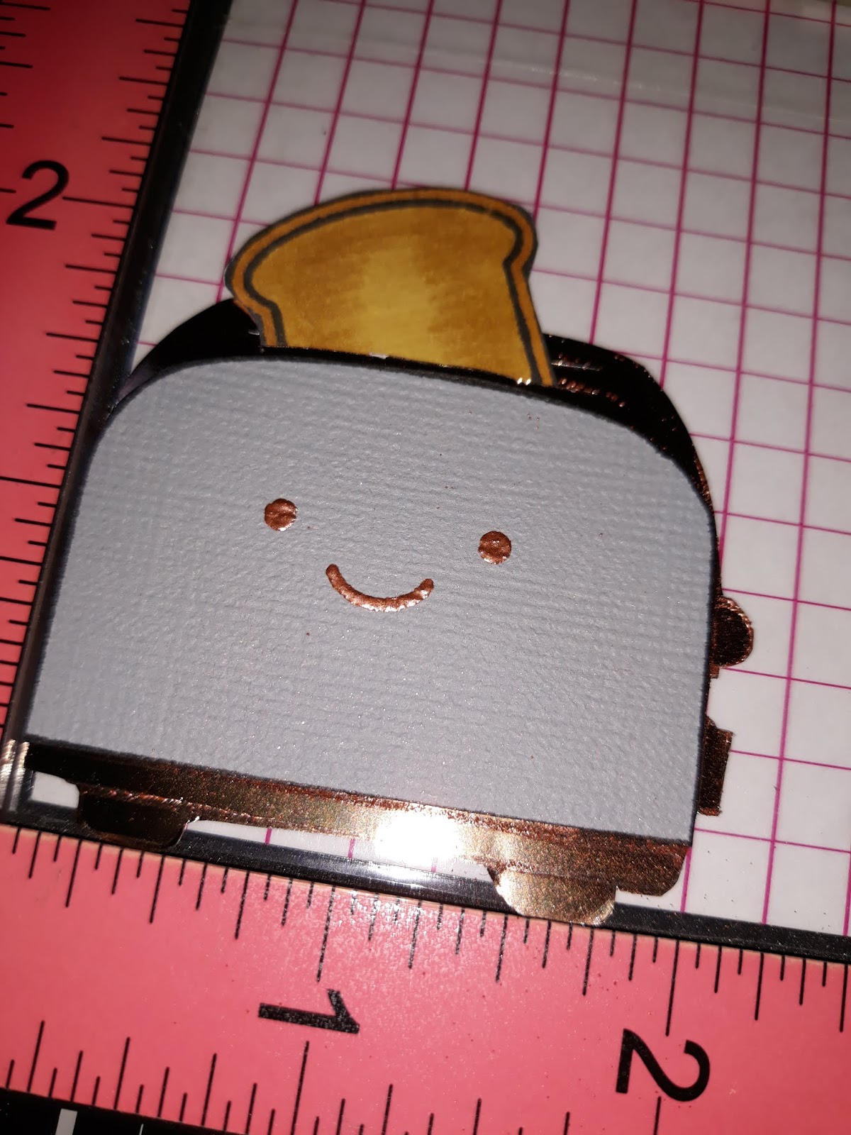 Then I stamped and embossed the face on the toaster in wow copper powder.