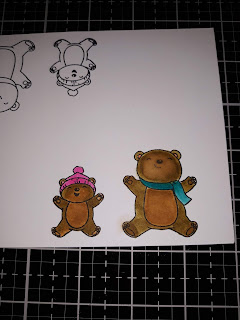 Put double sided tape behind images, (bears) and pop the in front of the wings in the snow.