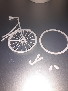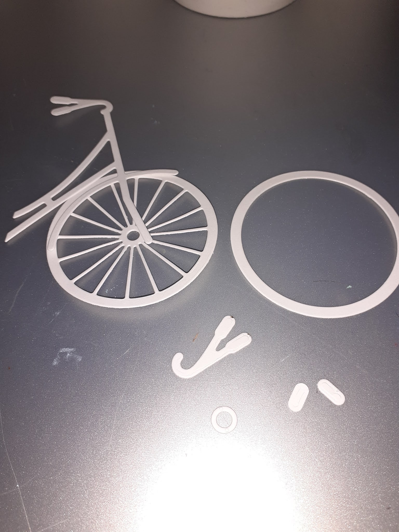 Die cut your bicycle parts all of them out of your 110lb cardstock.