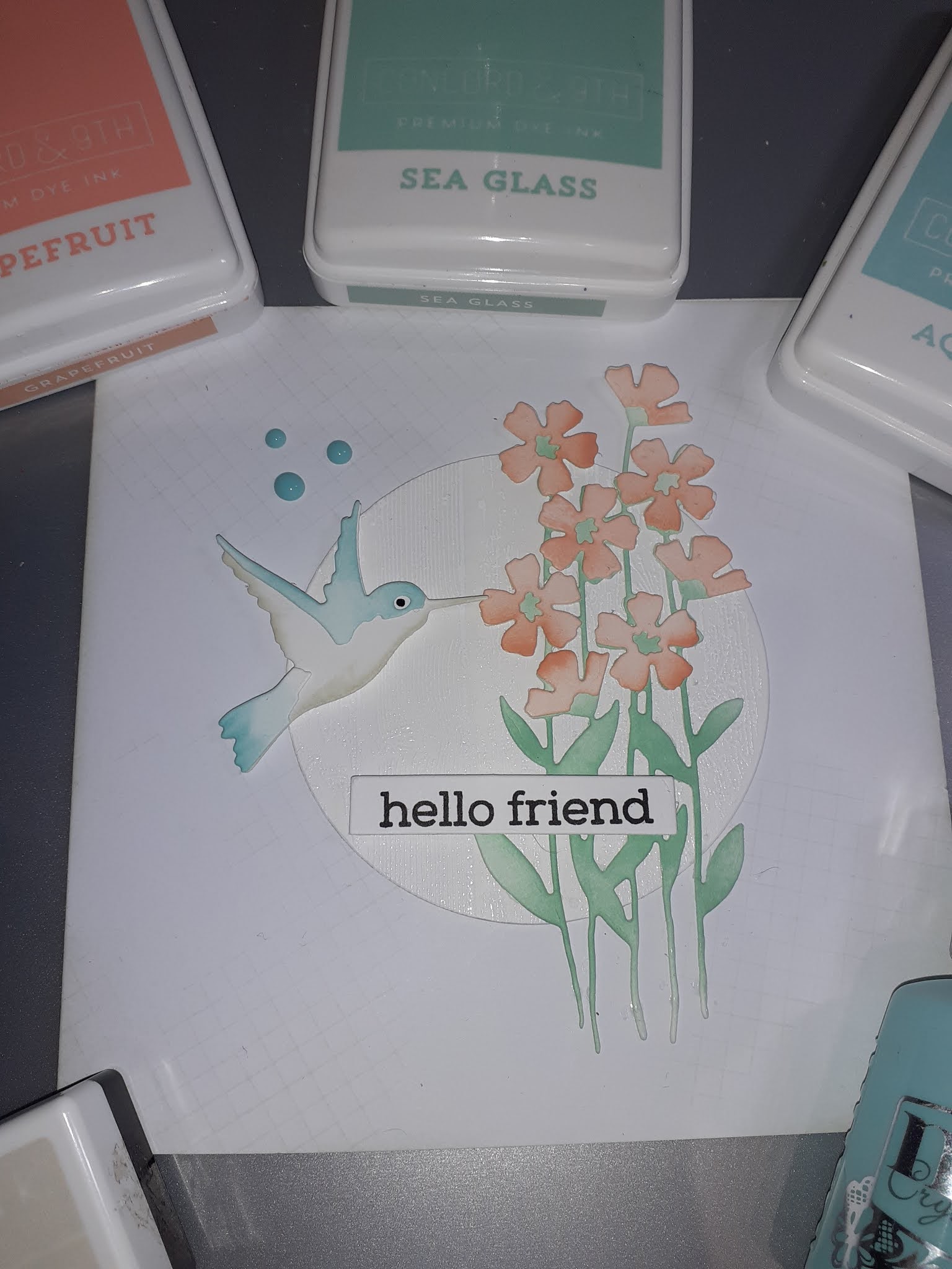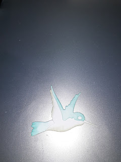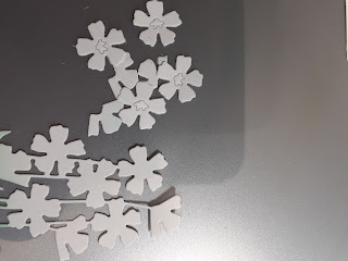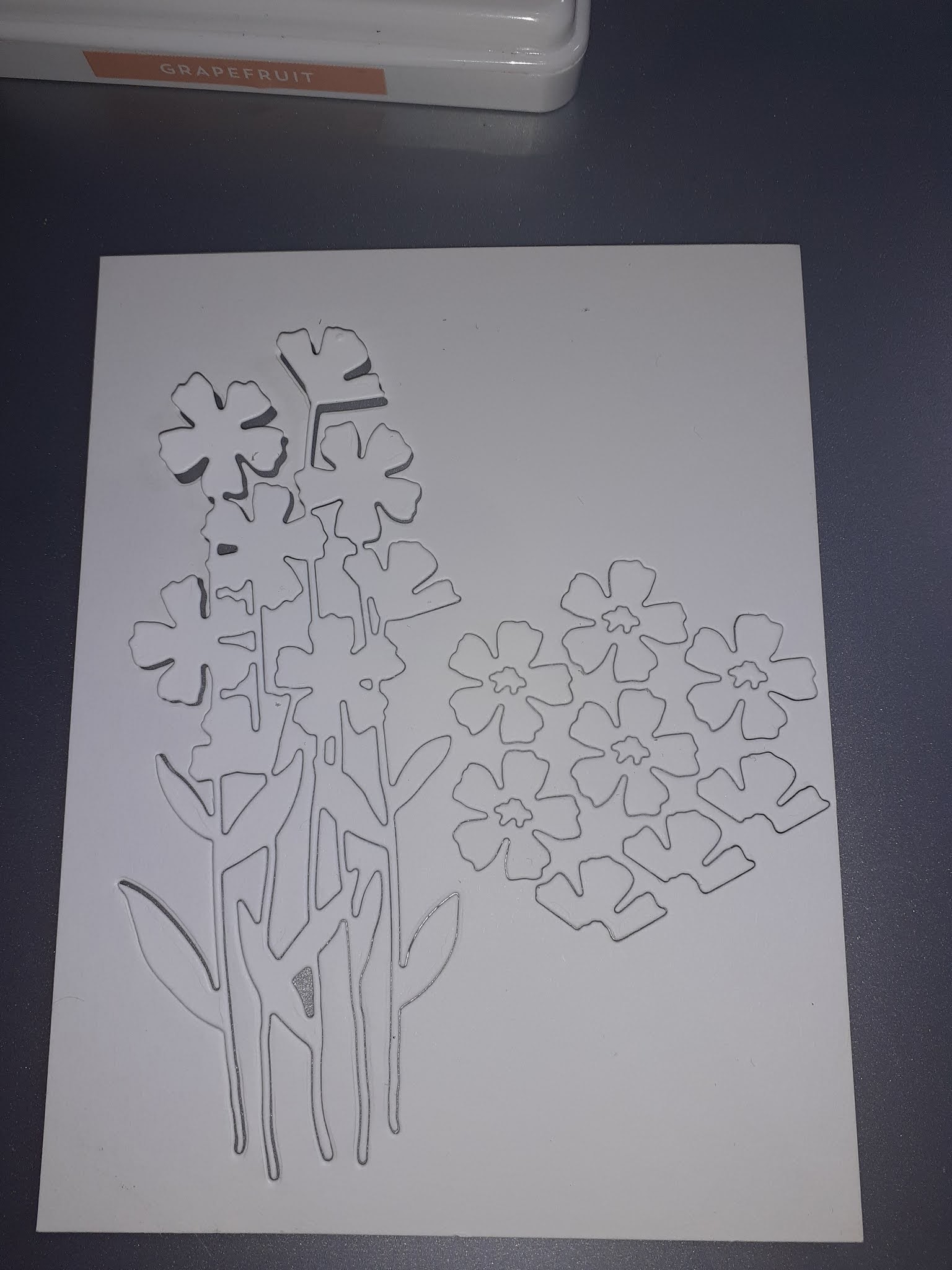 Die cut all the elements, flowers, bird, and circle out of your white cardstock.