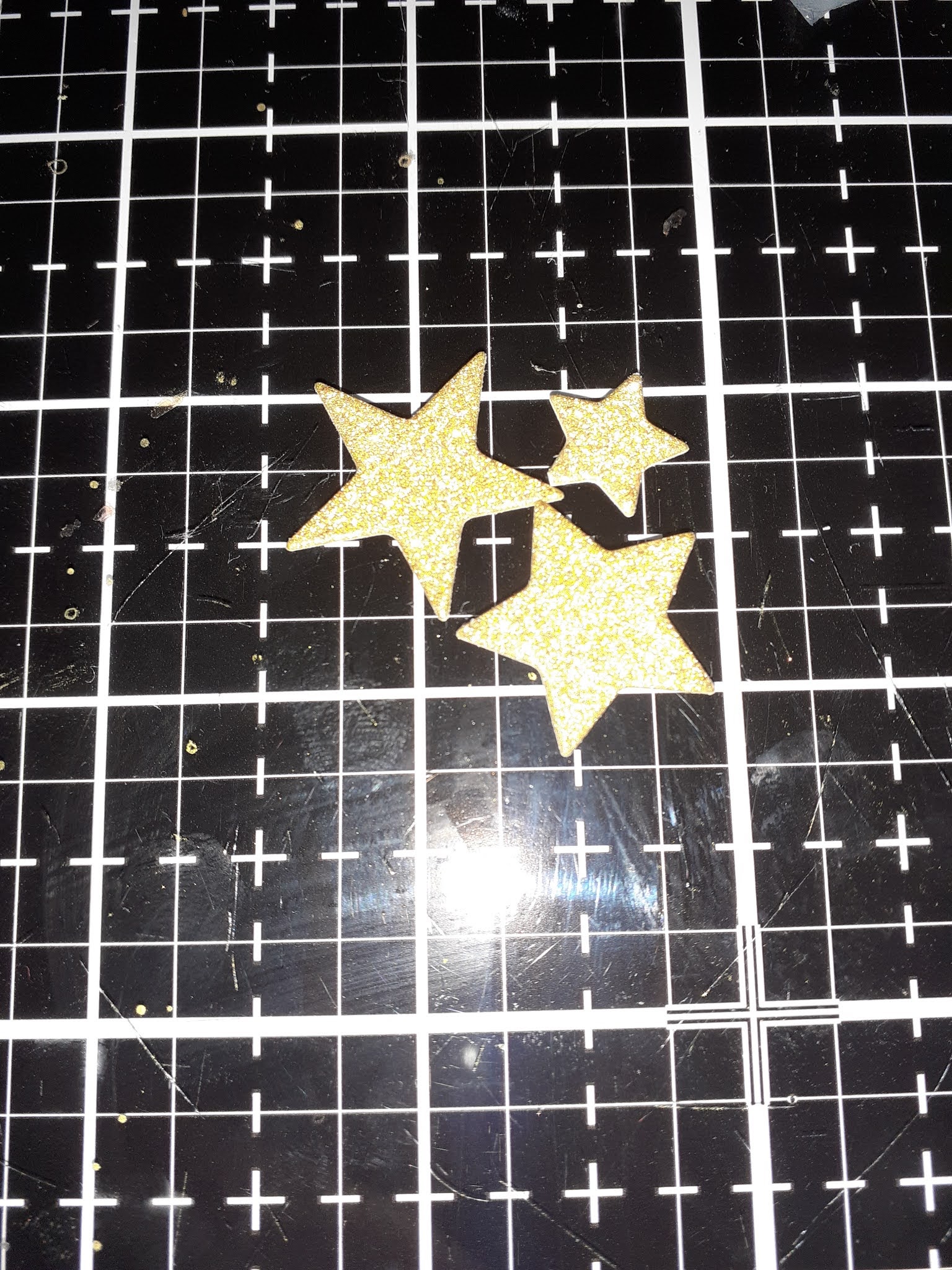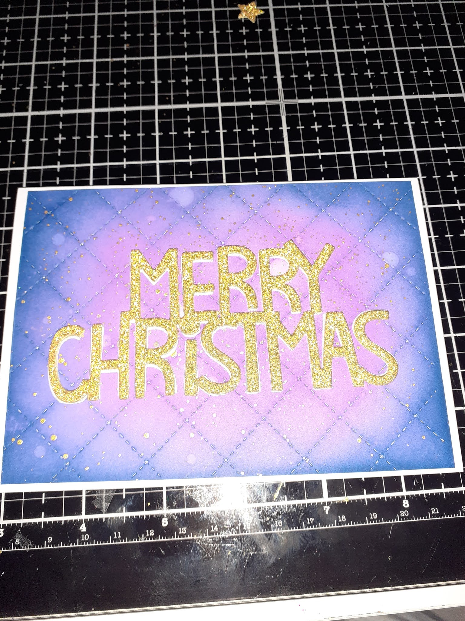 Die Cut out your sentiment and stars from Gold Glitter cardstock. Also die cut out the sentiment die 3 times from white card stock.