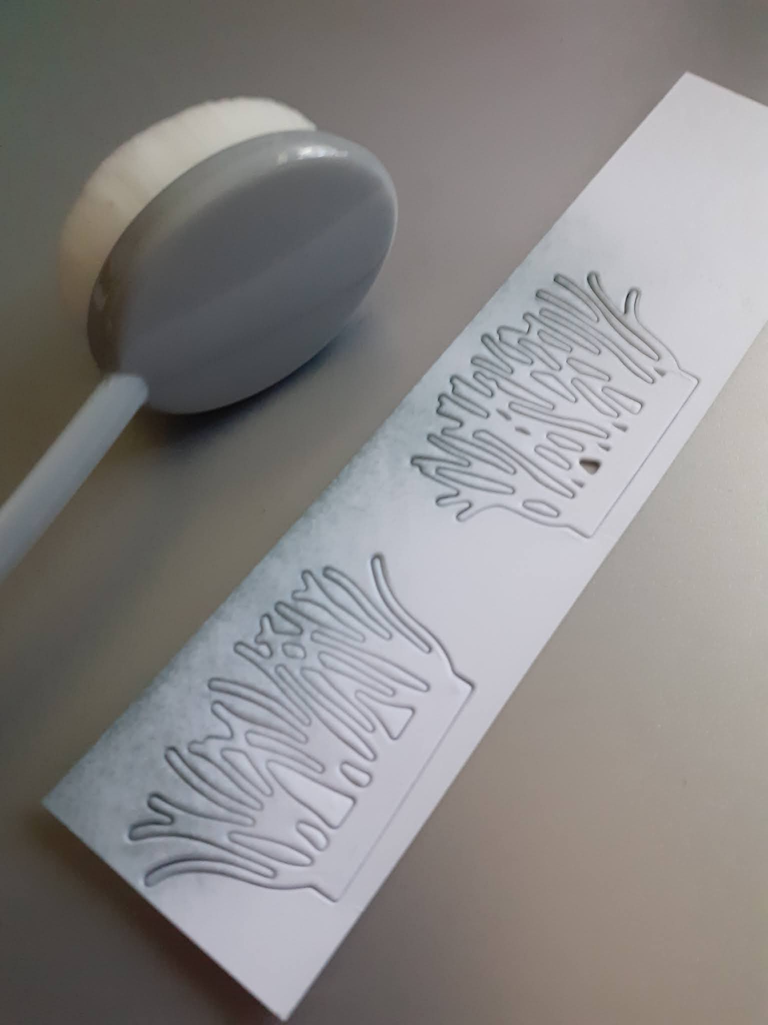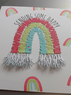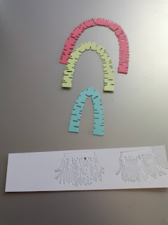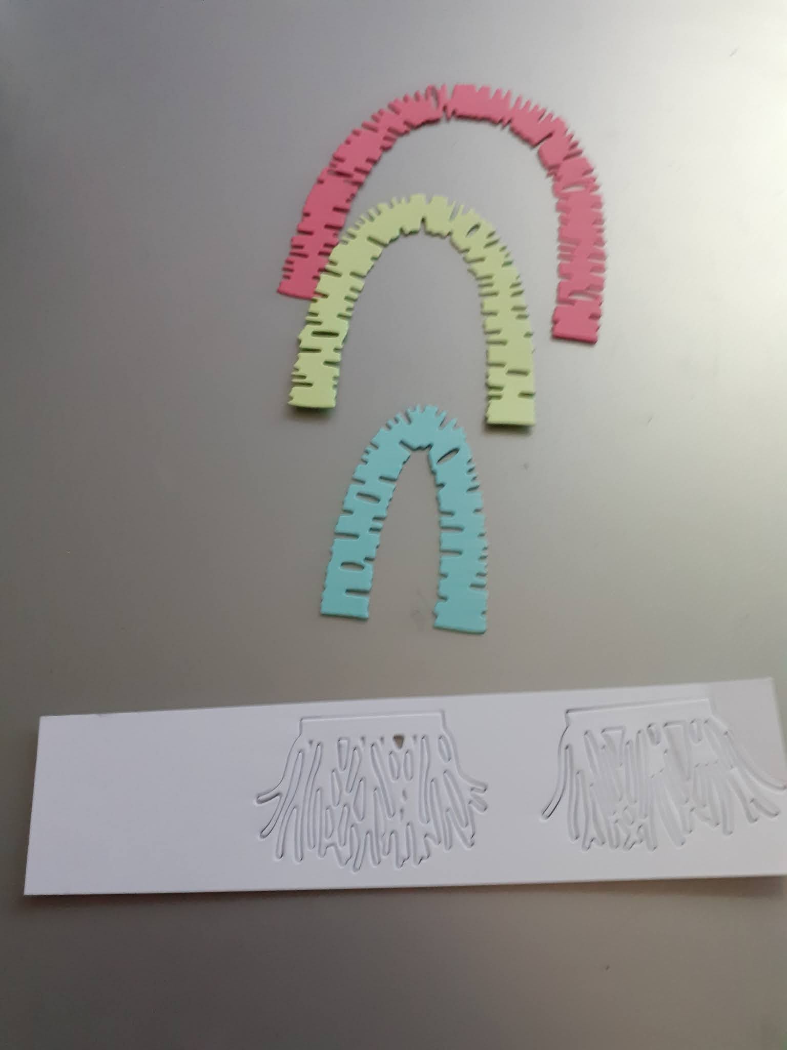 The next stage was die cutting the rainbow dies using the same colour cardstock as I'd used inks. The tassels I cut from white 110lb Neenah cardstock.