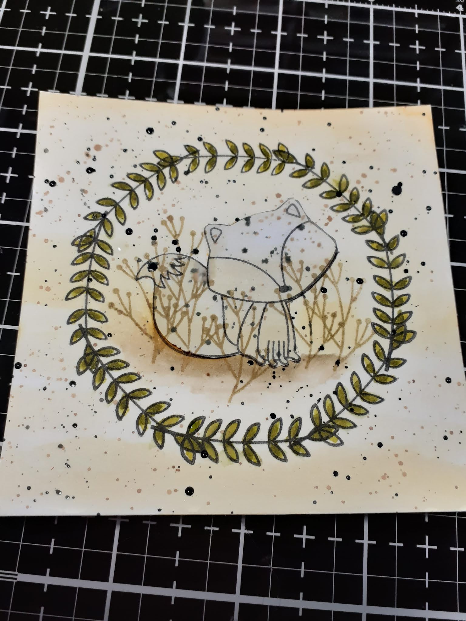 Once dry I coloured in the foliage wreath.