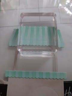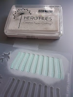Using the stencil I added colour to your cardstock. I used the detailed blending brushes. Firstly Sea Glass ink on the Sea Glass cardstock I had used. Then moving the stencil, as it has two different strips I then added the white pigment ink.