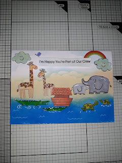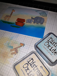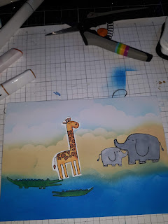 2. I stamped my image and instead of trying to cut out all the intricate parts, I cut around the whole image. I then used a blending tool to add the colours with a blending brush to match my card. ( I used this on the Giraffe's)