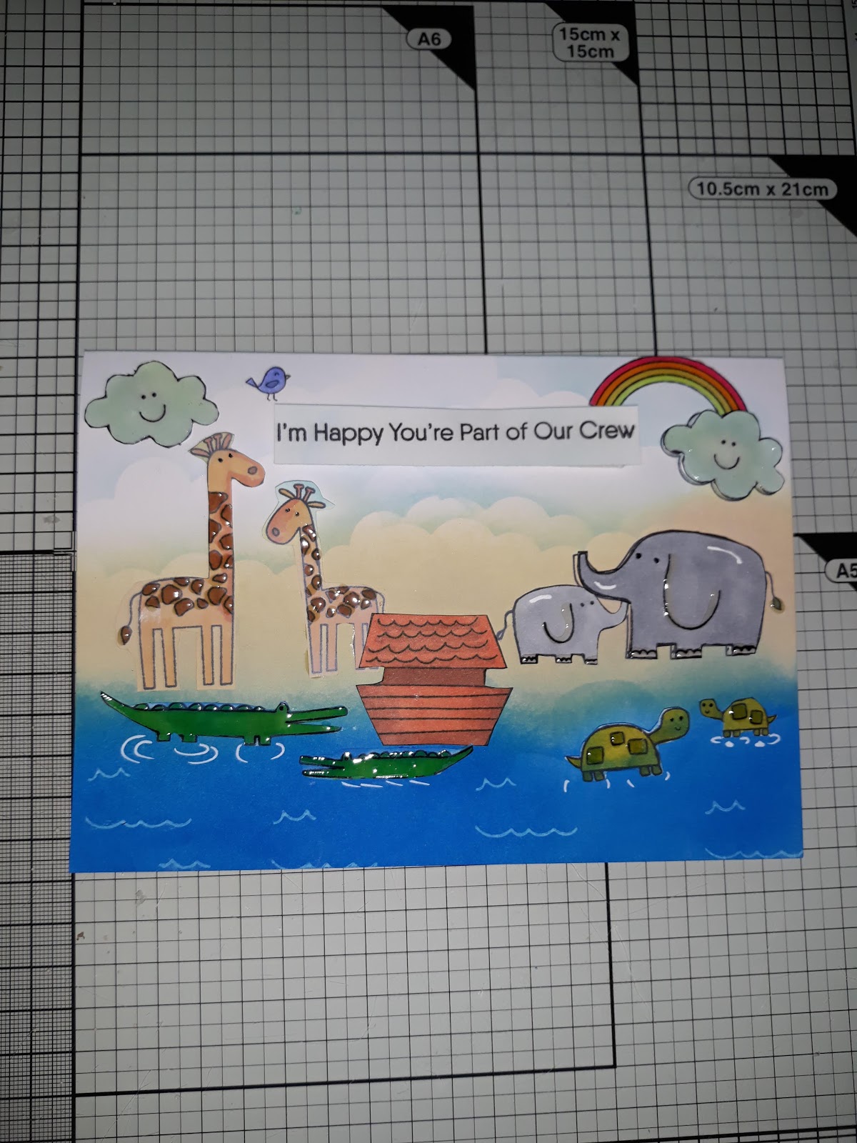 Colour the body of your animal cut it out and lay it directly over your image on your card.( I used this technique on the elephant.