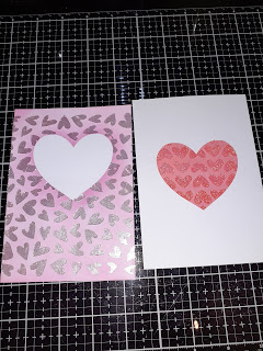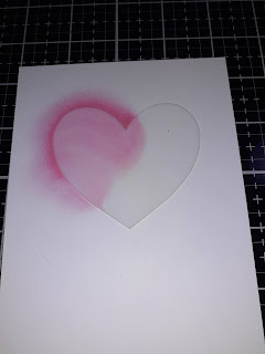 Firstly Lay down the heart mask, put a little removeable tape on the back of the mask. Centre it to the upper area on your cardstock.