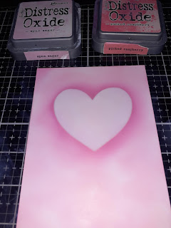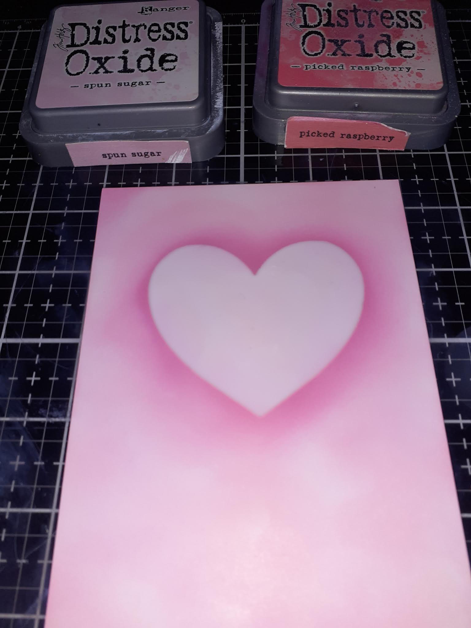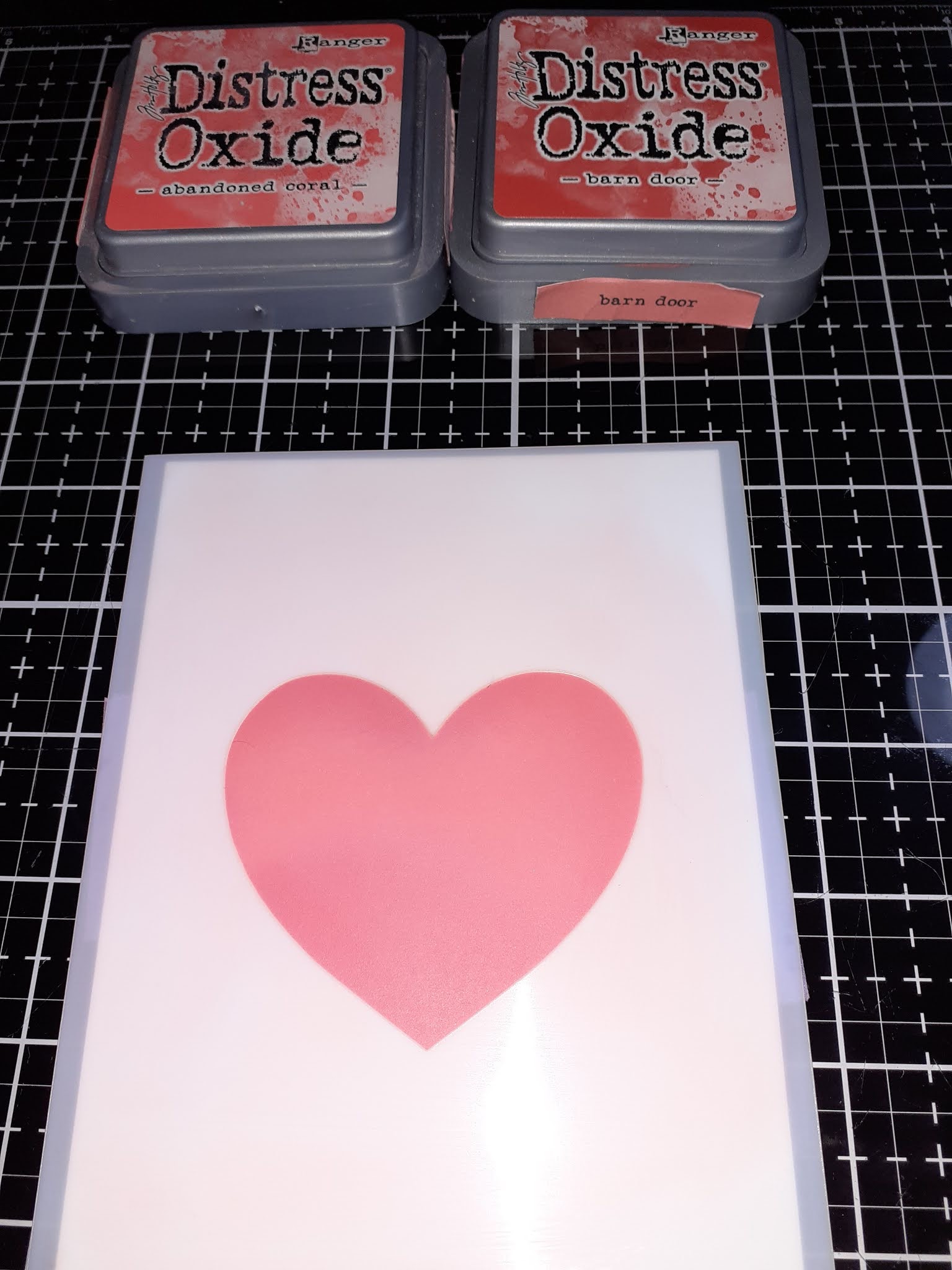 Place down the stencil, and using your oxide lightest colour first blend to create your heart.