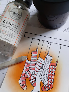 If like me you enjoy colouring as you find it relaxing, but struggle with blends and highlights. I recommend starting with a good set of coloured pencils. Today I'm using Faber Castell these are a wax pencil. The other tool I recommend is a blending stick which can be picked up cheap enough. These are shaped like pencil and are made of a very tight roll of paper. Gamsol is the other thing to get amazing results with little to no effort. To bring my work to life I also use fine liners.