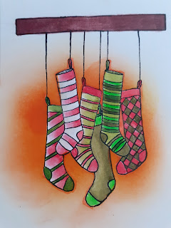 Using the same fine liner and in this case one in Red, Orange, Yellow and White gently add many dots of colour.