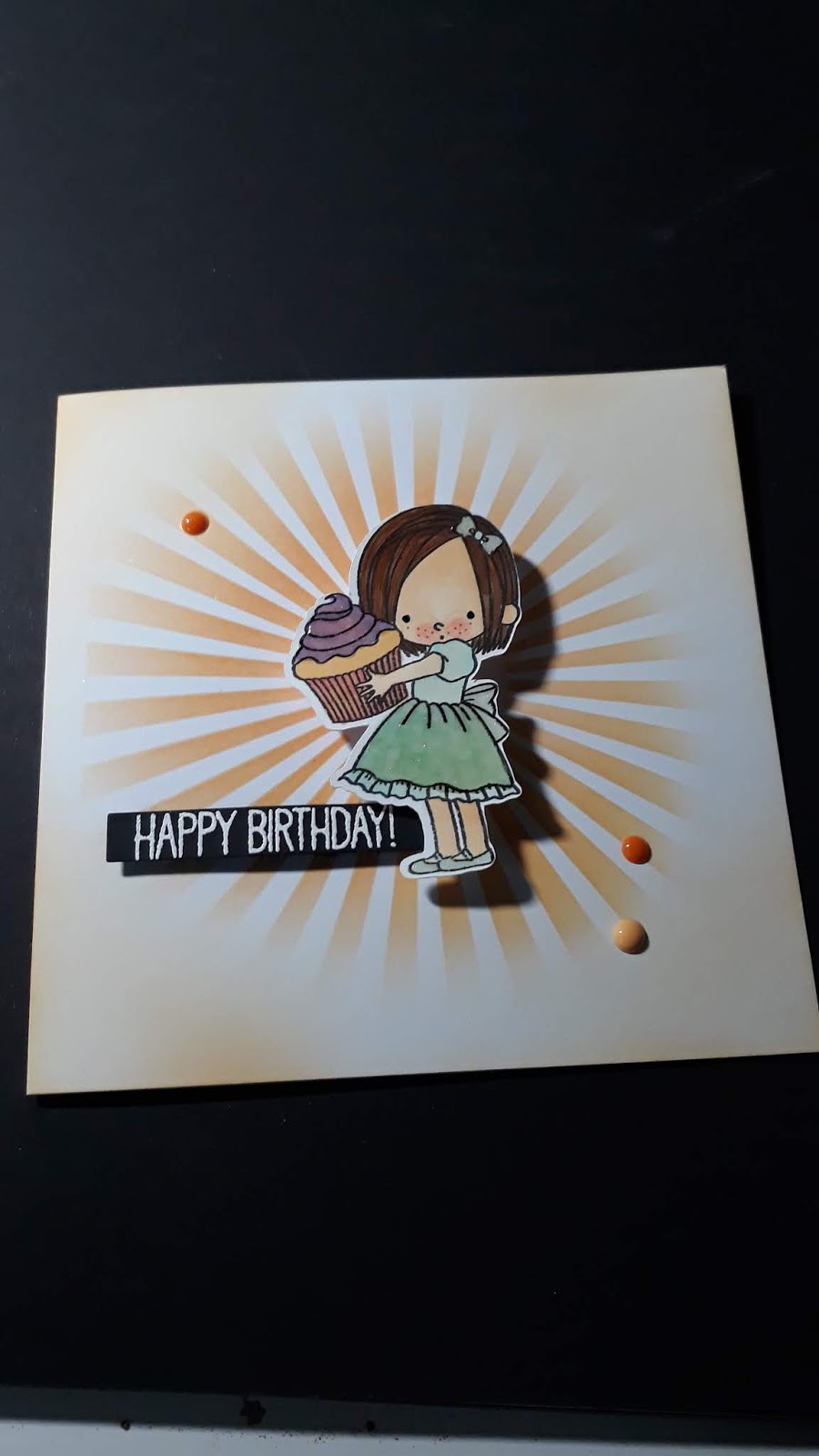 With a blender brush and my distress Oxide I created a Radiating Ray to show case my little girl.