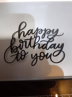 Cut out your sentiment die, three in scrap's of white card and a final layer of black. Stick these layers together. Add glossy accents to the black sentiment once you've attached it to your card.