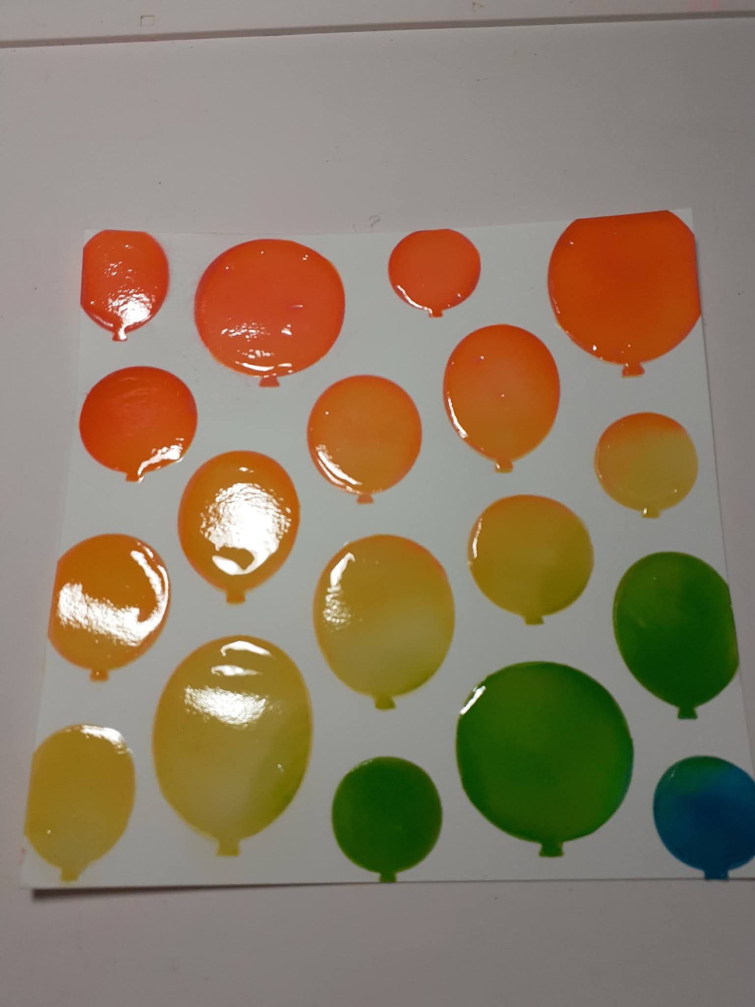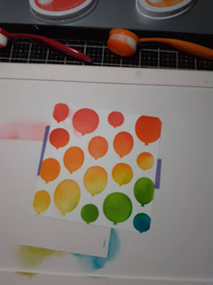 Using a blending tool, I prefer a brush as it gives a lighter lay down of colour, work down the card in rainbow order. These ink's are super juicy and I had to be very careful not to over saturate the project.