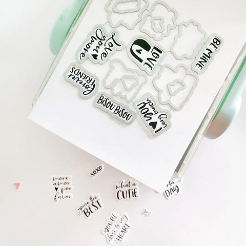 Take your sentiments to the next level!  The More Amor Sentiments Dies are perfect for cutting out your favorite phrases from the More Amor Sentiments Stamp Set and popping them up for extra dimension. A must-have for layering up cards and projects, these dies add versatility, polish, and that little something extra to every message of love.