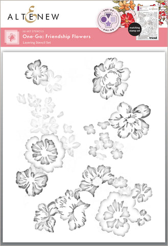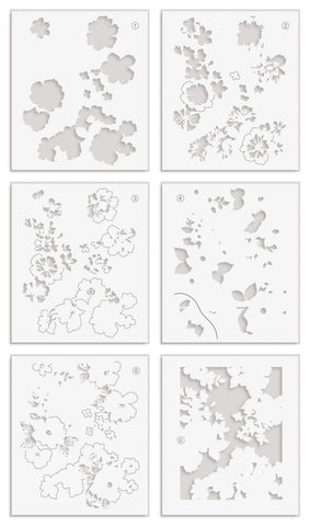 The 6" x 7" One-Go: Friendship Flowers Layering Stencil Set (6 in 1) is designed to coordinate with the One-Go: Friendship Flowers Stamp Set, making it easy to add beautiful color to your floral designs. This set includes four layered stencils for the flowers and an extra stencil for creating custom backgrounds.