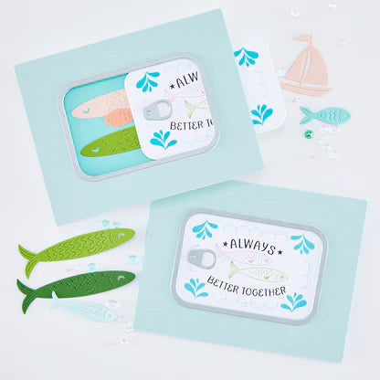 Bring a splash of fun to your crafting with the quirky Big Mouth Sardine Tin Die Set! Designed to work with the Hero Arts Big Mouth Slider Dies, the tin can open to reveal a scene, message, or surprise element inside. It’s perfect for creating interactive cards that bring big smiles.