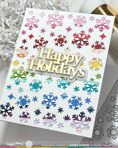 This die cuts out an A2 panel filled with snowflake designs. Use the full panel as a background or save the individual snowflake cutouts as accents for winter-themed projects.