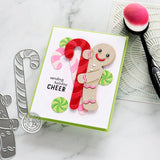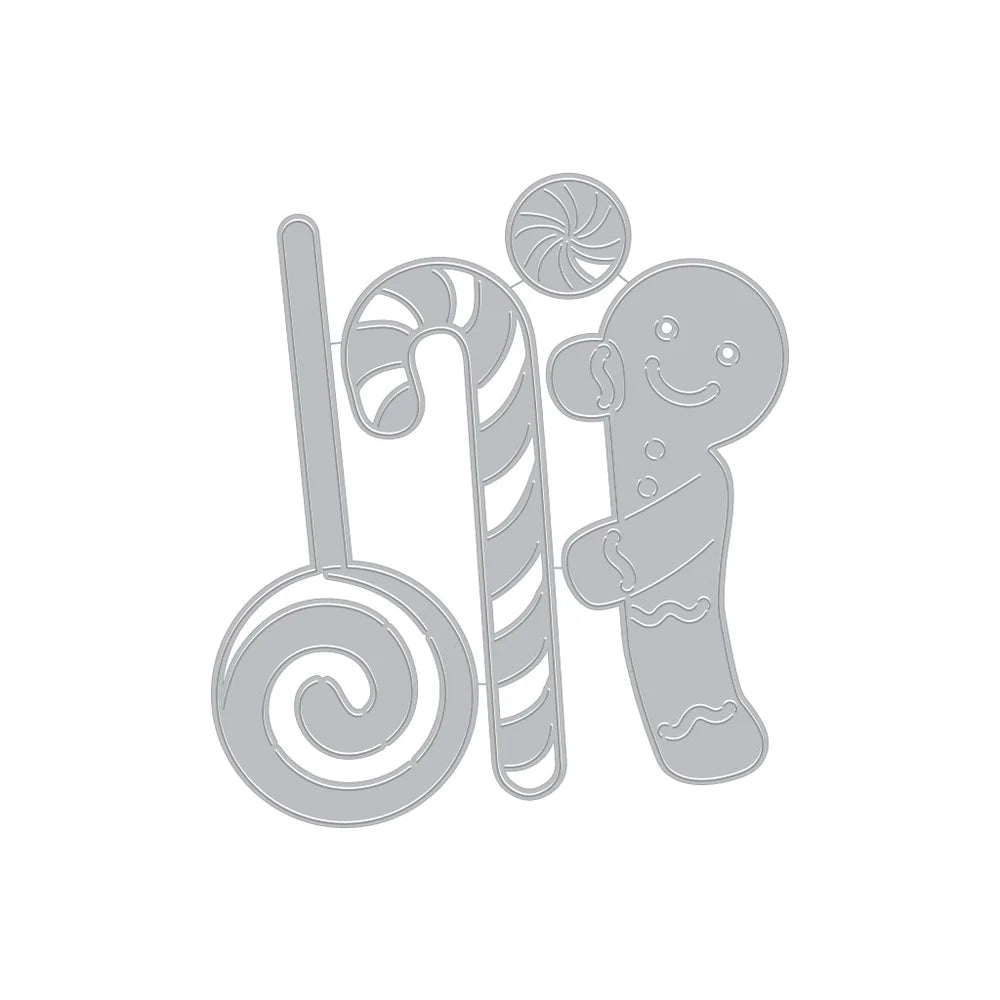 An adorable gingerbread man, peeking around the corner. Comes with additional candy cane, lollipop, and peppermint candy dies to mix and match. Perfect for cards, tags, scrapbooks, and more!