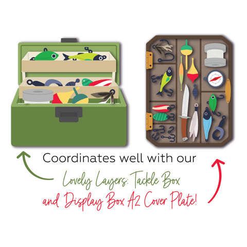 Transform your die-cutting projects with this versatile tackle box! Seven pre-clipped steel dies let you build it as a fishing tackle box, glam makeup organizer, or craft supply holder... the choice is yours. Pair it with matching add-on dies to customize your creation. Precision-engineered from premium steel, these dies work with any standard die-cutting machine that handles thin metal wafer dies. One box, endless possibilities!