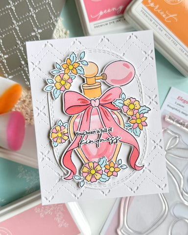Add a touch of uplifting beauty to your handmade cards with the Fragrance Notes stamp set, designed by Inna Moreva. This elegant design features delicate floral clusters paired with graceful, heartfelt sentiments that celebrate kindness, encouragement, and everyday joy.