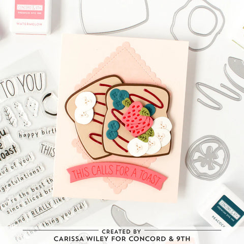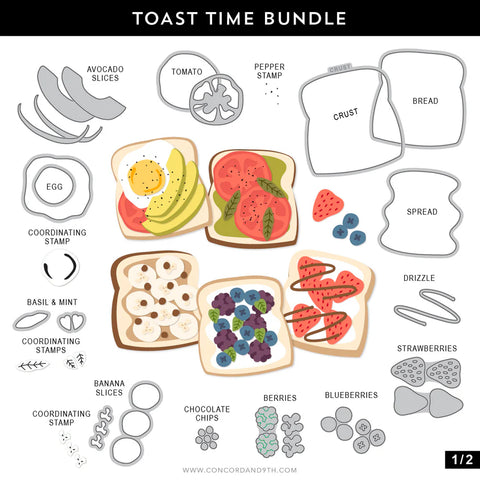 The Toast Time Dies are the best thing since sliced bread! This set has everything you need to piece together the perfect snack, from fresh berries and avocados to savory tomatoes and spreads, the creative combinations are endless. Top off your project with a punny sentiment from the coordinating Toast Time Stamp Set and you’re ready to dish out friendly hellos, happy birthdays and celebrations galore. 27 pieces.