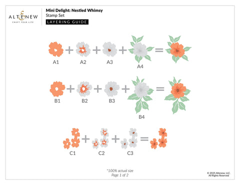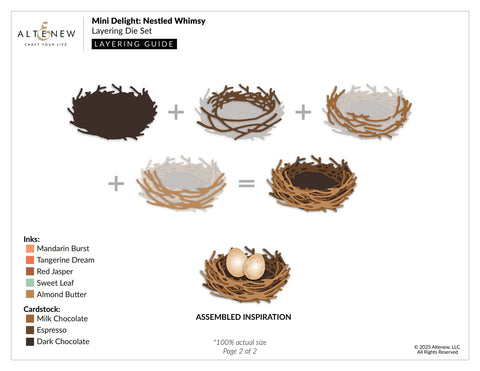 Get ready to bloom with creativity with the Mini Delight: Nestled Whimsy Stamp & Die Set! This 3" x 4" stamp set features two elegant florals, delicate leaves, three petite blossoms, and three heartfelt sentiments that add warmth to any project. The coordinating die set creates a layered nest with four detailed layers and two tiny eggs—perfect for crafting cozy, nature-inspired scenes. Use the coordinating florals to bring your nest to life or mix and match with your favorite Altenew sets for endless versatility.