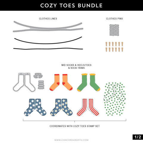 Create the cutest sock-themed cards with the Cozy Toes Dies! Cut out a whole wardrobe's worth of miniature socks, from tiny anklets to tall knee-highs. String them up on a clothesline with clothespins or artfully arrange them on your card front. This set is perfect for celebrating new babies, offering encouragement, or sending a quick hello. Pair the dies with the coordinating Cozy Toes Stamp Set to add a variety of patterns to the socks. 11 pieces.