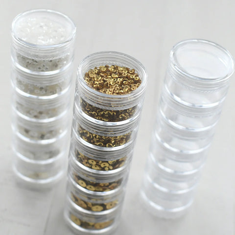 Designed to coordinate with Altenew Stellar Sequins, this set of six clear screw-on containers also keeps beads, gems, and other small craft treasures neatly stored and easy to find.