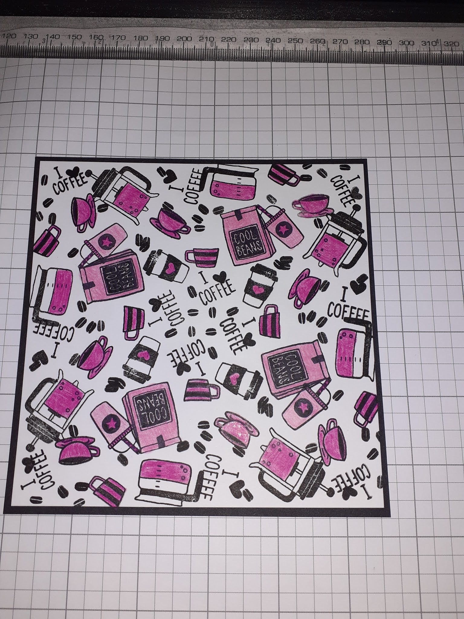 Ensuite, je l'ai monté sur un morceau de papier cartonné noir de 5 3/4 pouces carrés. Créer une belle pensionnaire.