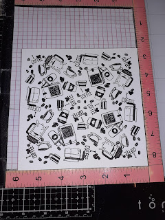Chaque fois que vous tamponnez, collez avec la même couleur d'encre. J'ai utilisé du noir pour un style monochrome.
