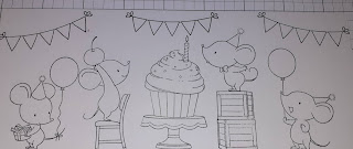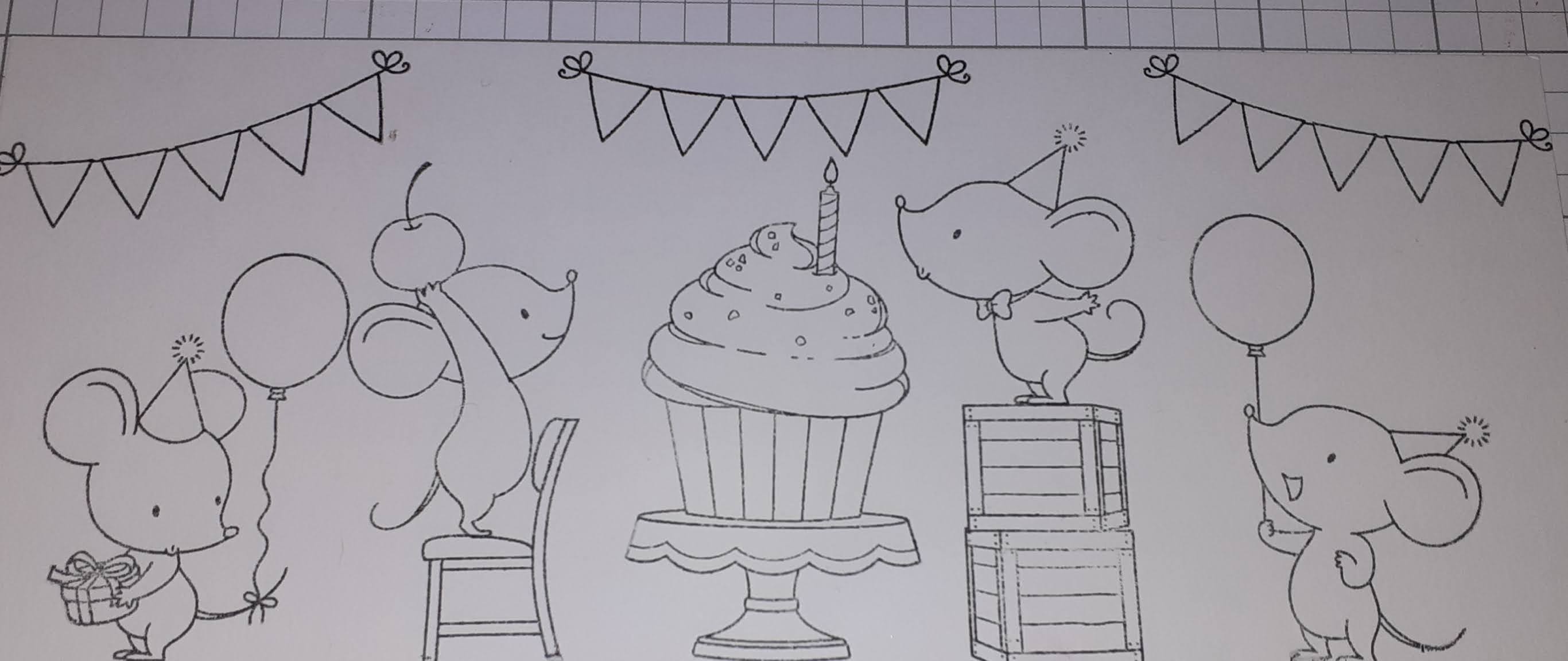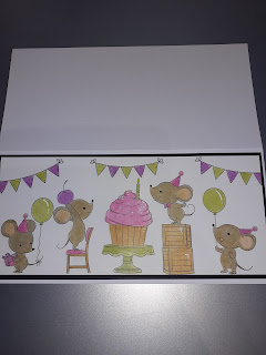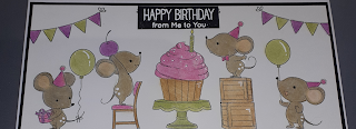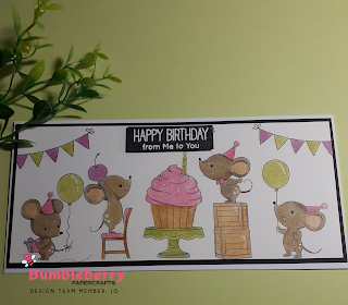 Cette semaine, c'est une carte slimline relaxante et basique utilisant mes crayons pour créer une jolie carte d'anniversaire. J'adore les petites souris sur les timbres "Mice Day To Celebrate" de MFT.